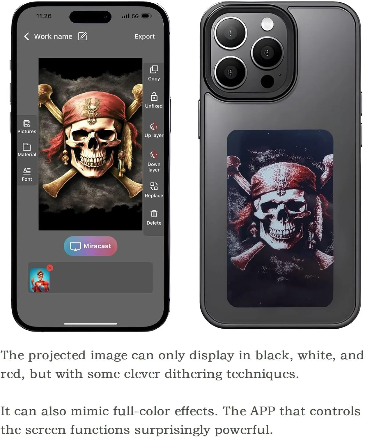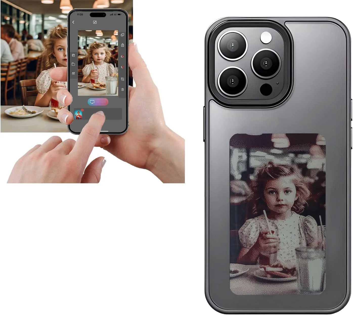 Funda de teléfono con Tinta electrónica para iPhone 15 con proyección Trasera Inteligente para Fotos Personalizadas, Muestra Fotos al Instante en la Cubierta Trasera de la Pantalla de Tinta.