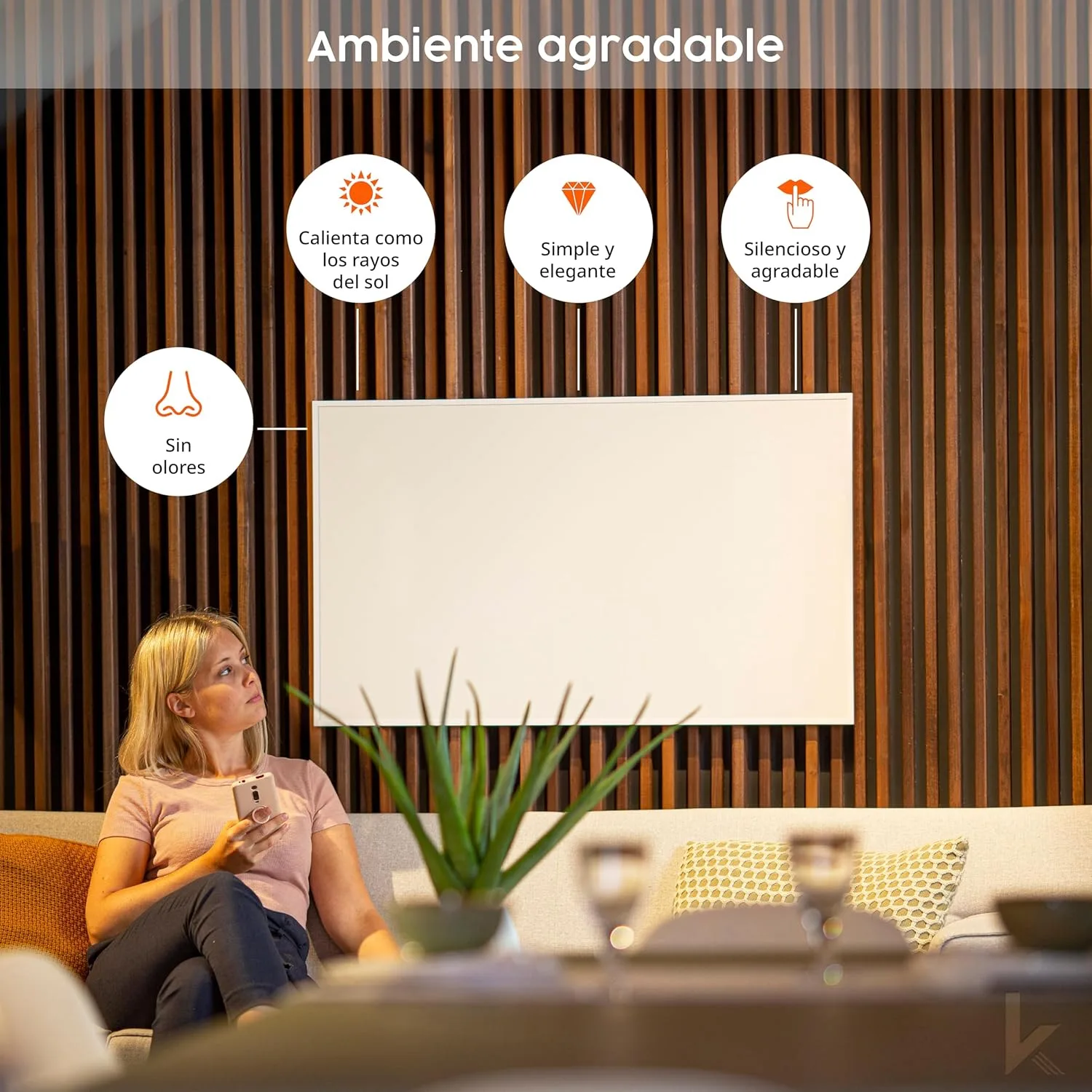 Lo acabo de instalar en la pared colgado, y queda muy bien. Calienta aparentemente bien (llevo una mañana con él).
