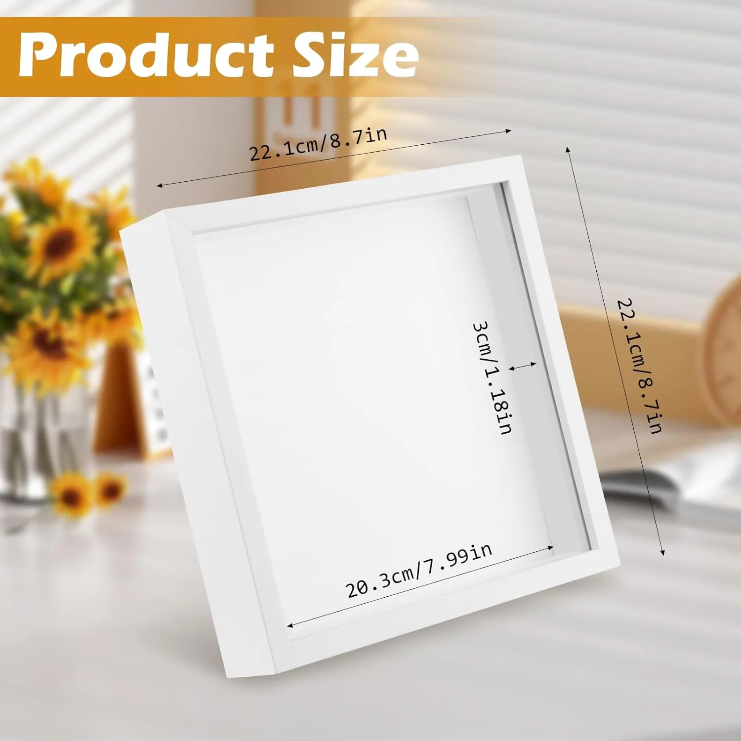 𝐌𝐚𝐫𝐜𝐨 𝐝𝐞 𝐅𝐨𝐭𝐨 𝐞𝐧 𝟑𝐃: El marco blanco mide 21.5 x 21.5 x 4.5 cm; el cristal mide 20 x 20 cm con una profundidad interior de 3 cm y es apto para colocarse de pie o colgarse en la pared. Los marcos de sombra son ideales para preservar tus recuerdos, patrones, boletos, huellas de manos o pies de bebés, todos ellos son preciosos momentos en el tiempo.