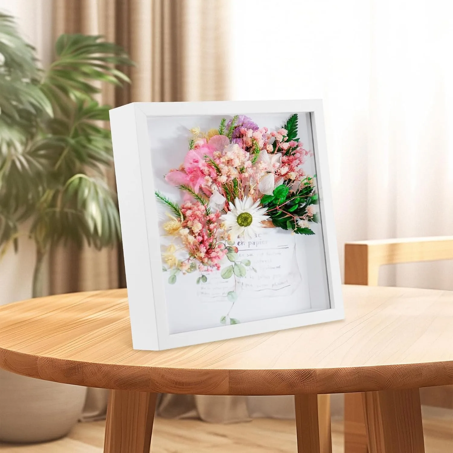 𝐂𝐫𝐞𝐚𝐭𝐢𝐯𝐢𝐝𝐚𝐝 𝐃𝐈𝐘: Retira la parte trasera de madera y saca el cartón del interior. Puedes colocar tus fotos favoritas, flores secas, sellos, luces de hadas, conchas marinas y otros elementos en el interior para crear un regalo especial para tus seres queridos. El marco de madera rellenable es ideal para bodas, cumpleaños, inauguraciones, aniversarios, Navidad, Día de San Valentín y varias otras festividades.