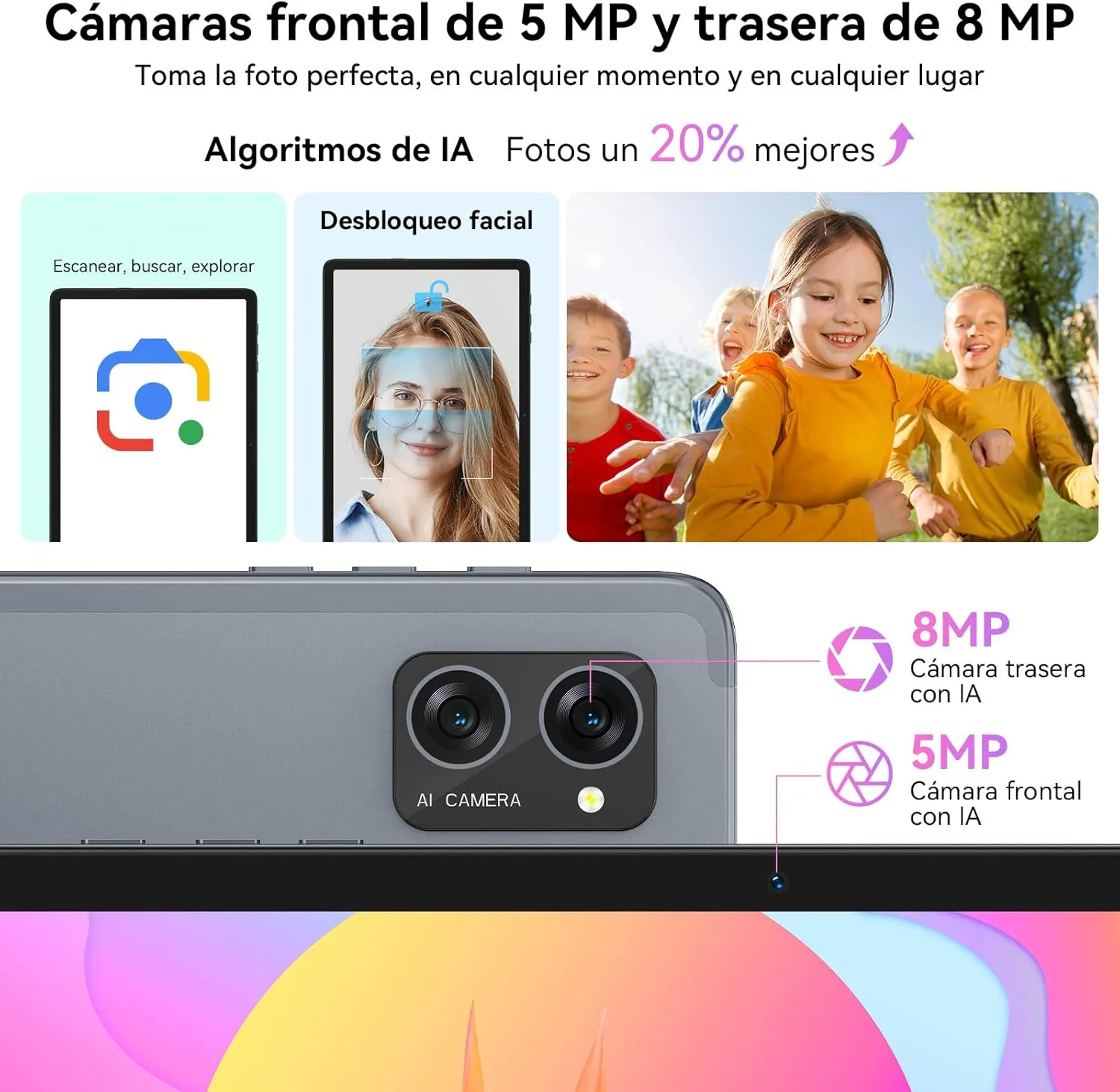 TABWEE T20 Tablet integra el potente procesador octa-core UniSoc T606, garantizando multitarea fluida y velocidad 30% más rápida. Con el innovador sistema,ofrece personalización inteligente, automatización intuitiva, modos multi-usuario y seguridad cifrada operación. Además, la tecnología de seguridad avanzada asegura tus datos personales mientras navegas en línea o realizas videoconferencias. Ideal para trabajo, ocio y uso familiar.