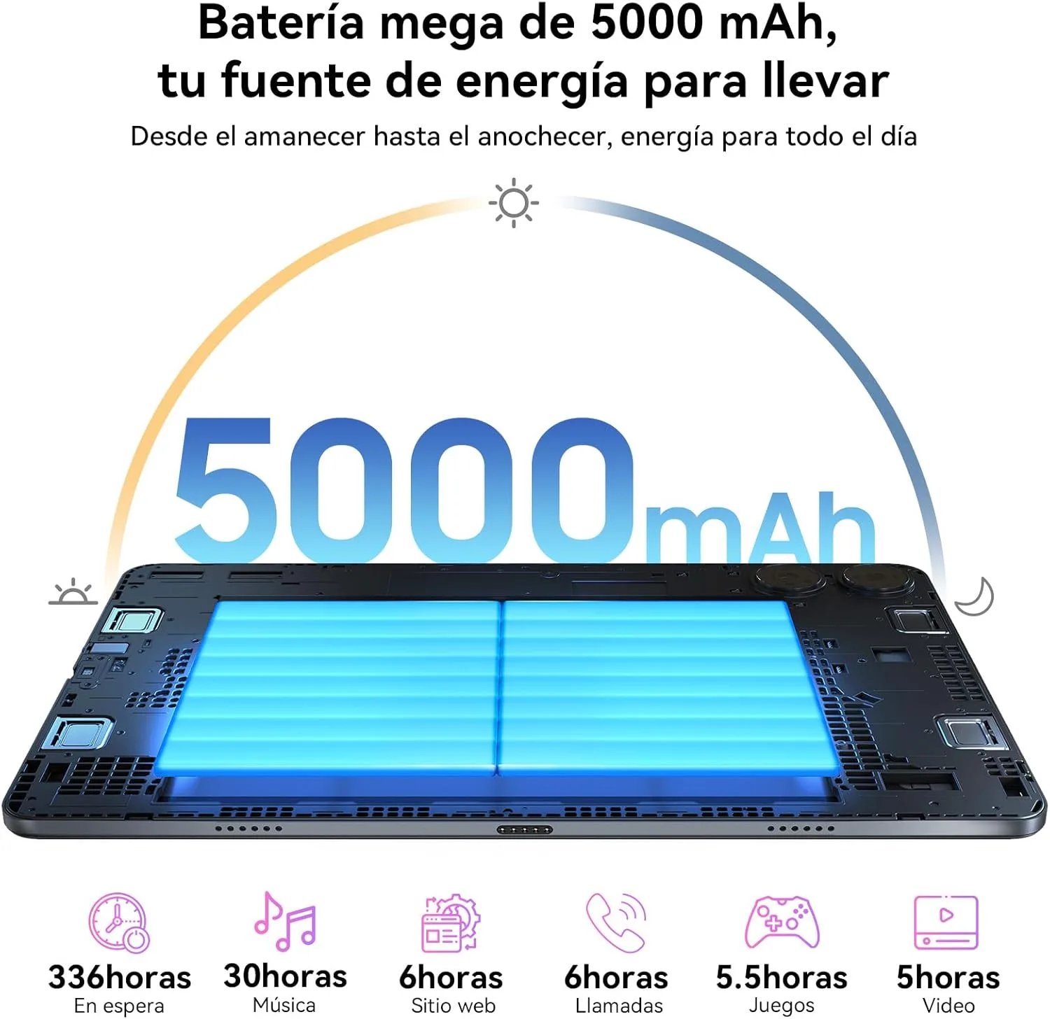 BATERÍA 5000MAH + 5G WIFI: TABWEE T20 Tablet Gaming Conexión estable mediante WiFi dual 2.4G/5G (tablet 5g) para videollamadas nítidas y gaming online sin lag. Batería de 5000mAh (336h standby), Incluye conector 3.5mm y doble cámara (8MP Trasera + 5MP frontal para videollamadas nítidas). El diseño ultraportátil (412g/8.3mm) hacen de esta tablet con lapiz tactil incluido la compañera perfecta para creativos móviles.