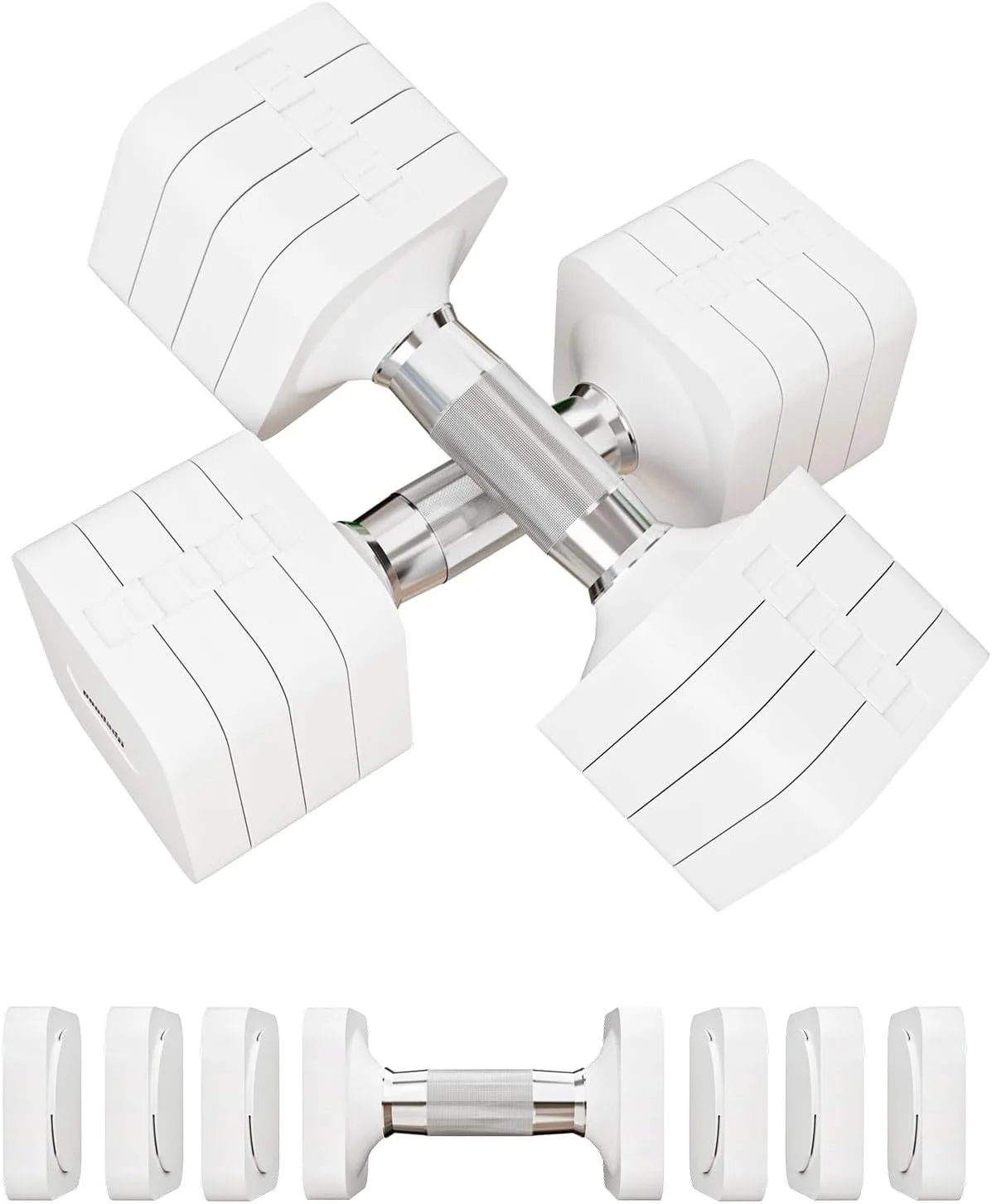 Calidad de construcción superior: Para hacerlas más duraderas, la carcasa de estas pesas ajustables está hecha de materiales ABS resistentes. Para mayor seguridad y comodidad, el mango cuenta con tiras antideslizantes para proporcionar un mejor agarre y comodidad para su entrenamiento