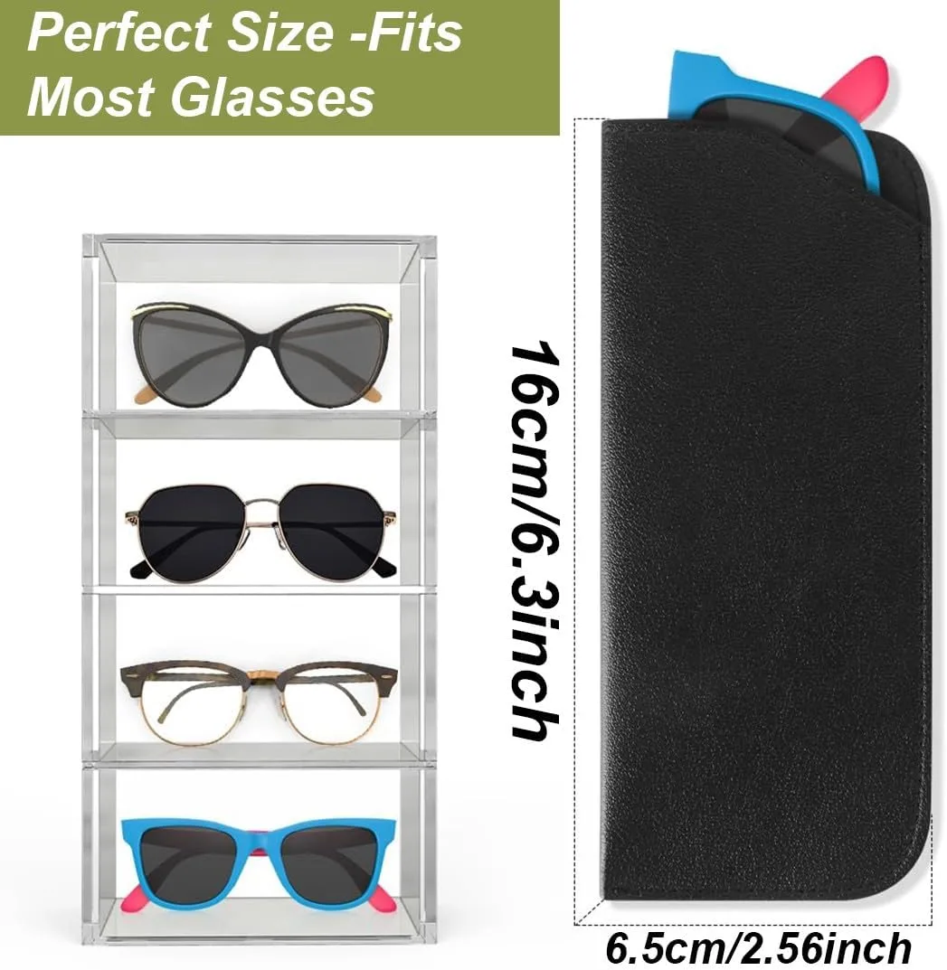 4 Pcs Funda Gafas Blanda, Funda Gafas de Sol, Estuche para Anteojos Estuche Suave para Gafas de Sol, PU Cuero Suaves Estuche Gafas Lectura Almacenaje, Caso Bolsa Gafas para Hombre Mujer