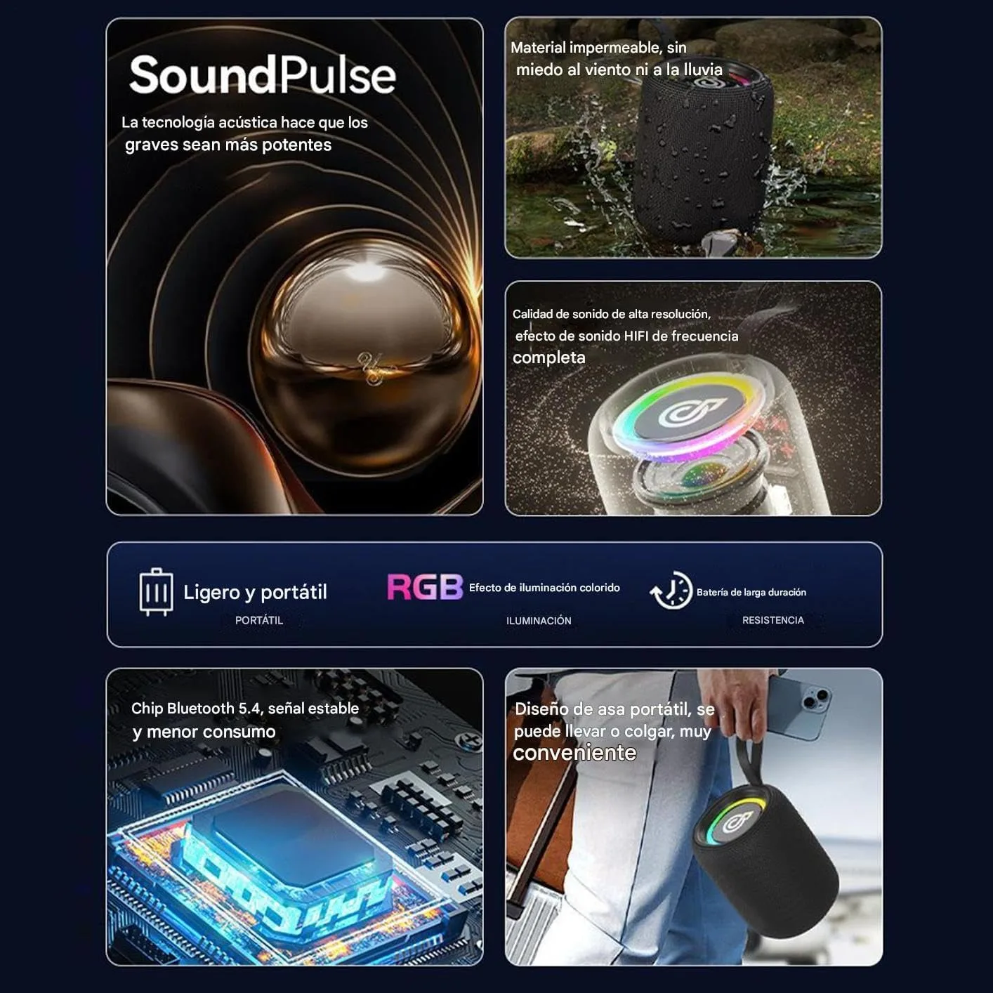 Resistencia Climática: Tecnología de sellado IPX5 protege componentes internos contra humedad y suciedad, ofreciendo calidad de sonido estable en piscinas, camping y zonas húmedas con eficacia demostrada.