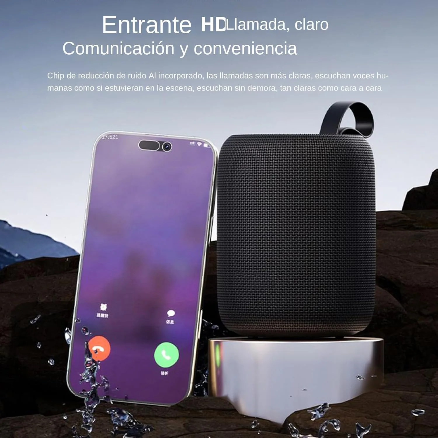 Portabilidad con Gancho: Altavoz impermeable diseñado con gancho integrado para máxima portabilidad en viajes y vehículos. Agarre ligero y antideslizante facilita el manejo en todo momento y lugar.