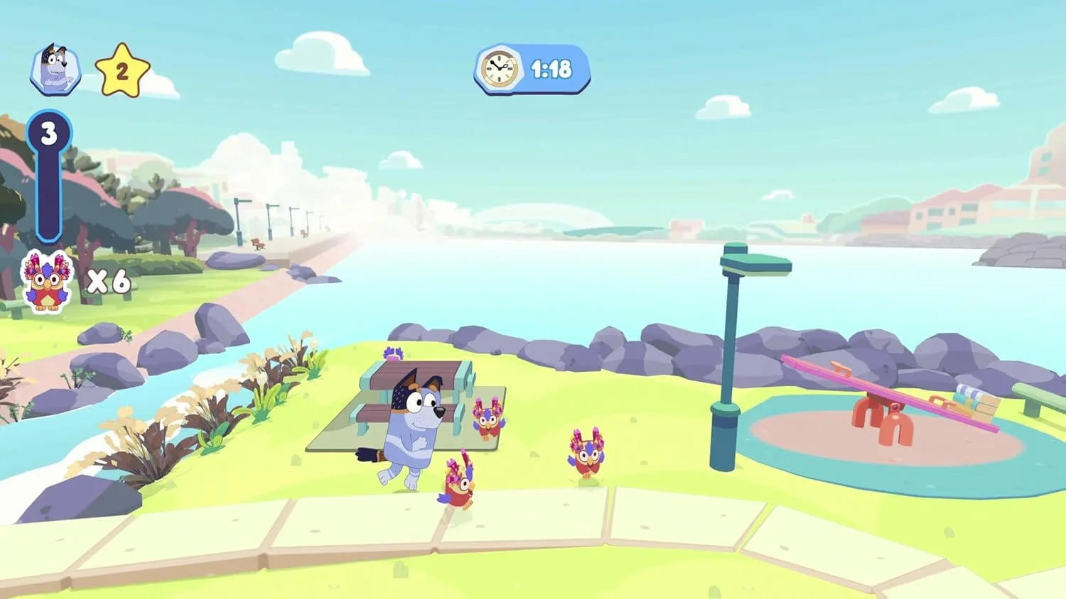 Lánzate al mundo de Bluey en busca de nuevos recuerdos y risas en Bluey: El Videojuego. Juega como Bluey, Bingo, mamá, papá, Muffin y el tío Stripe por el parque, la playa o el arroyo. Disfruta de minijuegos con nuevas reglas, divertidos disfraces y coleccionables de los personajes. Gana recompensas completando misiones con el abuelo, la tía Trixie y Nana, y llena de recuerdos tu álbum de pegatinas. Con formas más sencillas de interactuar, viajar entre ubicaciones y jugar en cooperativo, es ideal para todas las edades. Persiguiendo a Charlatán o con un gorro burbuja, siempre habrá algo por descubrir.