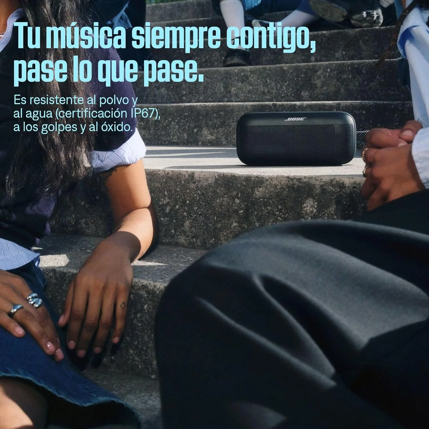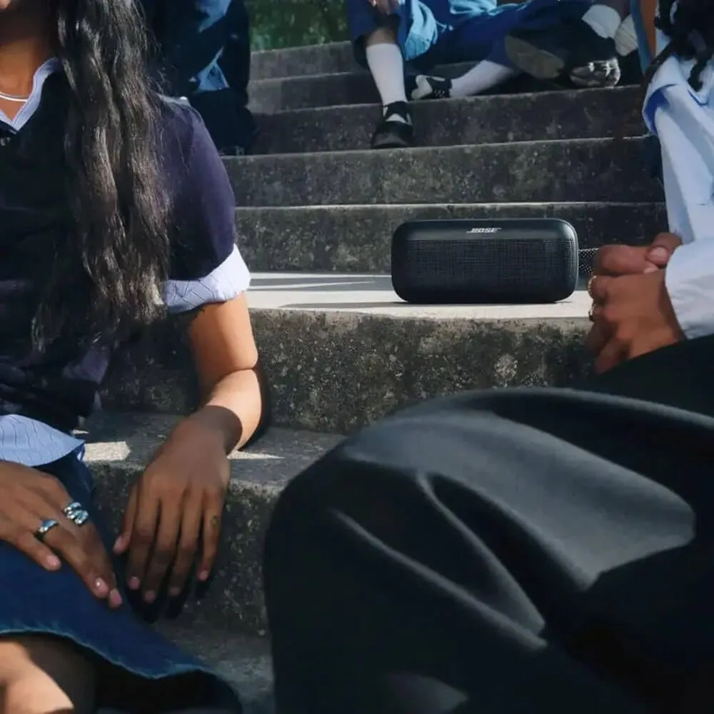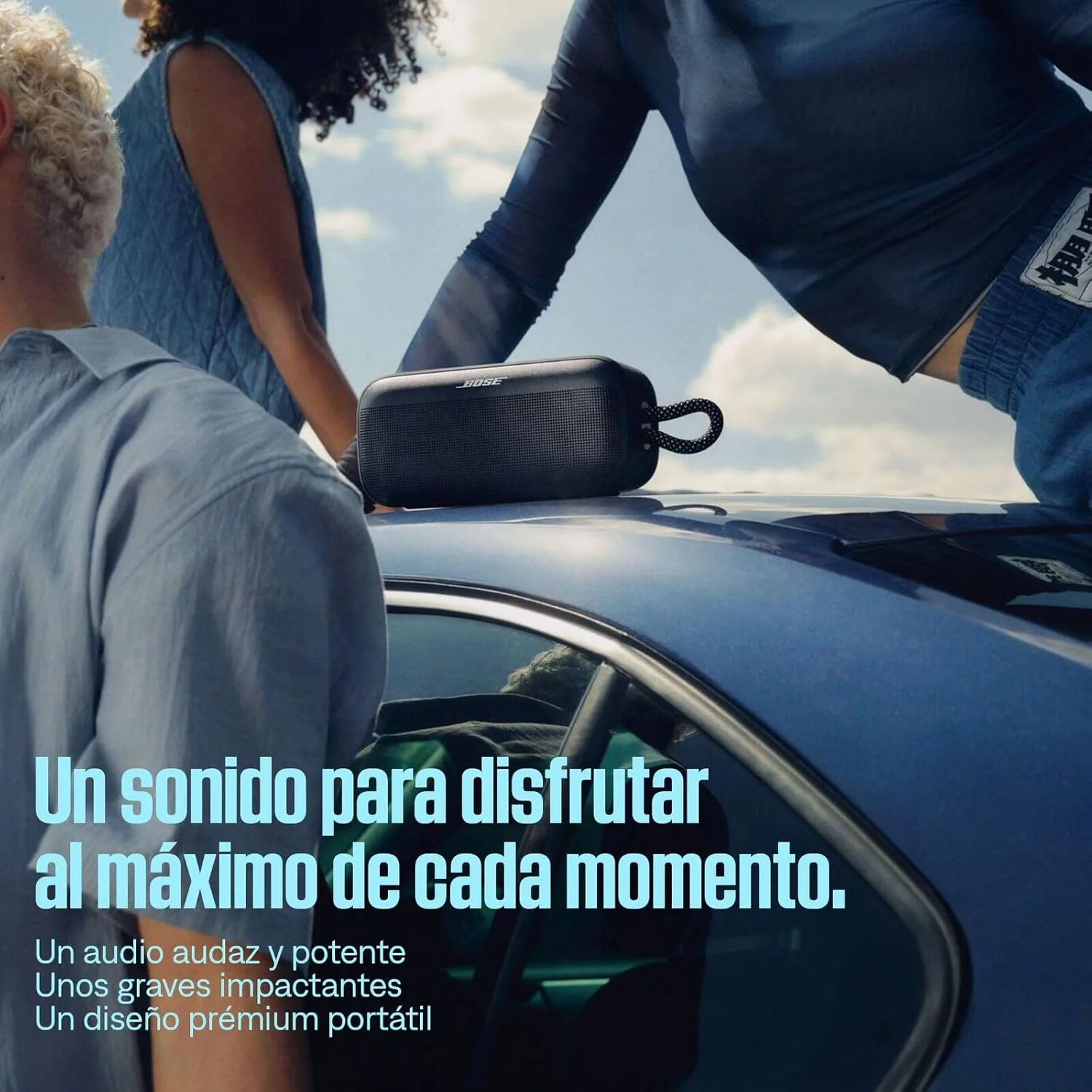 ALTAVOZ PARA EXTERIOR DE SONIDO POTENTE: Sube la energía y lleva tus fiestas entre amigos a un nuevo nivel gracias al sonido fuerte y vibrante y a los potentes graves del altavoz portátil SoundLink Plus.