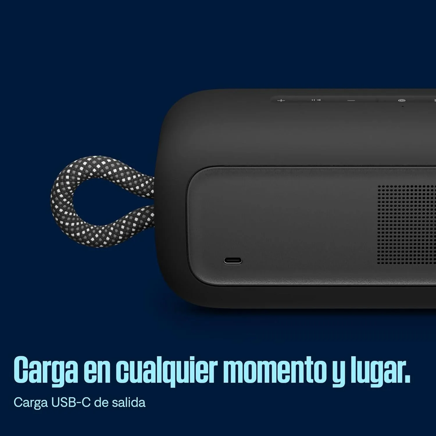 SALIDA DE CARGA USB-C: Conecta directamente tu móvil al puerto de carga USB-C de tu altavoz inalámbrico para que esté siempre cargado.