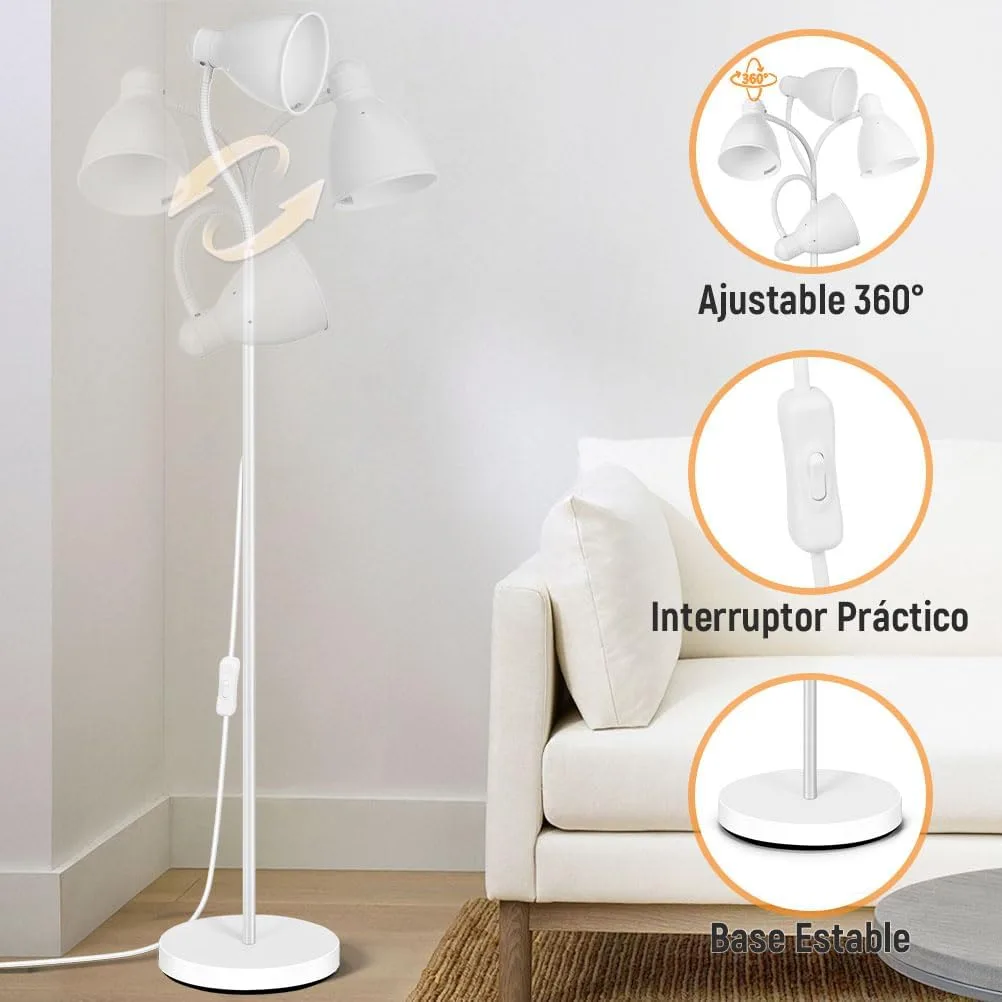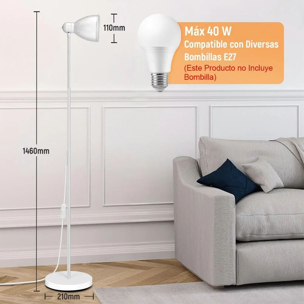 Resumen del producto: OUSFOT Lampara de Pie, 146cm Sencillo Blanco Lampara de Pie Salon Ajustable 220V E27 (Bombilla no Incluida) Ideal para Dormitorio,Sala de Estar y Oficina