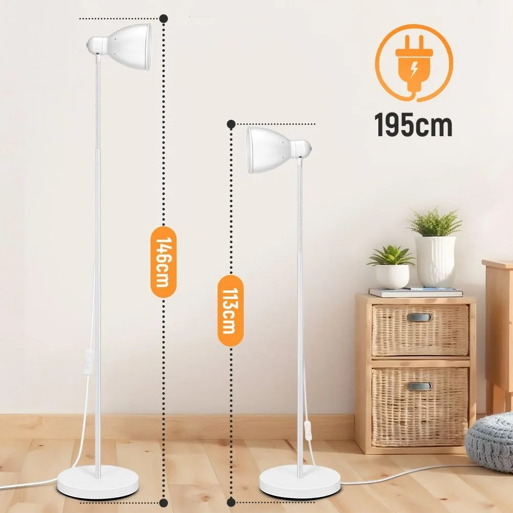 OUSFOT Lampara de Pie, 146cm Sencillo Blanco Lampara de Pie Salon Ajustable 220V E27 (Bombilla no Incluida) Ideal para Dormitorio,Sala de Estar y Oficina