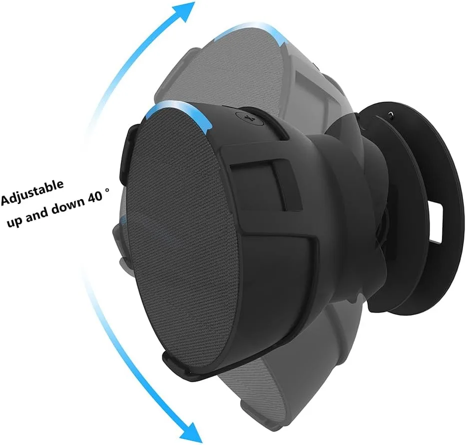 Ahorro de espacio: el soporte montado en la pared te permite colgar el altavoz en la pared, por lo que es fácil de colocar y dejar espacio para la encimera de la cocina, mesa de café o mesita de noche. Diseño perforado/no perforado, se puede lograr una instalación sencilla fijando o atornillando tornillos a la pared y enhebrando el cable USB para conectar el altavoz.