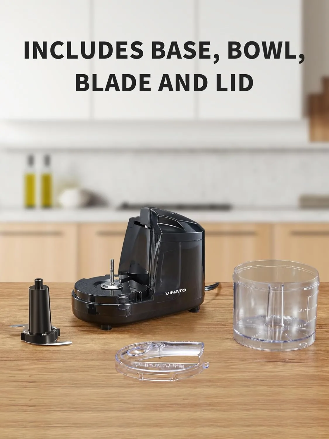 【Seguro y Fácil de Limpiar】VINATO procesador de alimentos está hecho de material ABS de grado alimenticio, inodoro, extraíble y lavable. Diseño transparente de la taza, puede ver la etapa de picado de un vistazo. Tenga en cuenta que la cuchilla está afilada. Por lo tanto, por favor tenga cuidado al usar y limpiar.