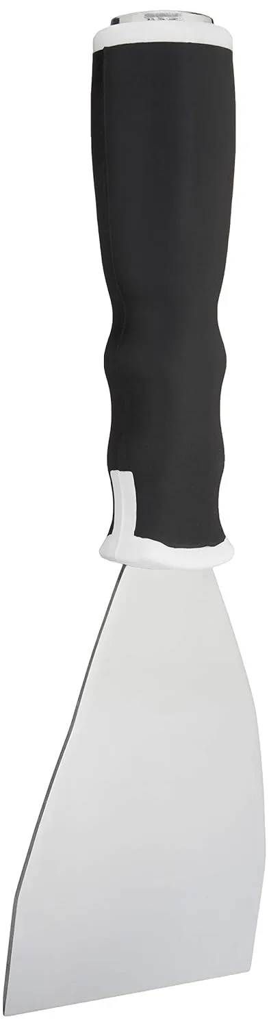 Hecho de acero resistente tratado térmicamente, pulido, la hoja de borde de cincel de 7.62 cm del raspador proporciona una resistencia fiable y un rendimiento eficaz. Aún más, su perfil doblado crea un espacio adicional durante su uso para ayudar a mantener las paredes y los suelos a salvo de daños y para proteger los nudillos de los arañazos.