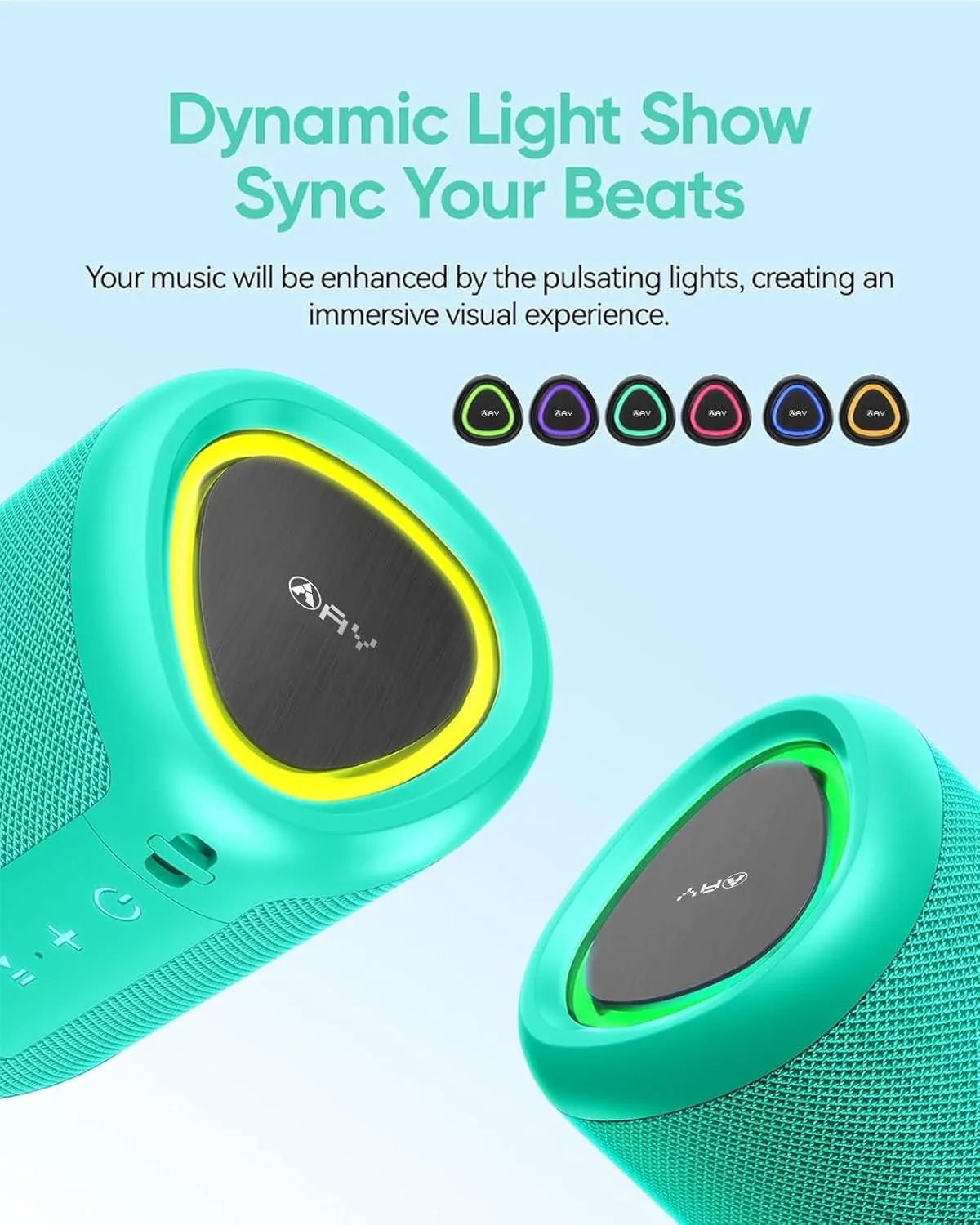 AY Altavoz Bluetooth Portátil con Luces, Impermeable IPX5, Parlante Estéreo, Entrada AUX&TF-Card, Autonomía de 24H, Altavoz Inalámbrico Bluetooth 5.3 Compacto para Camping,Viajes, Aire Libre