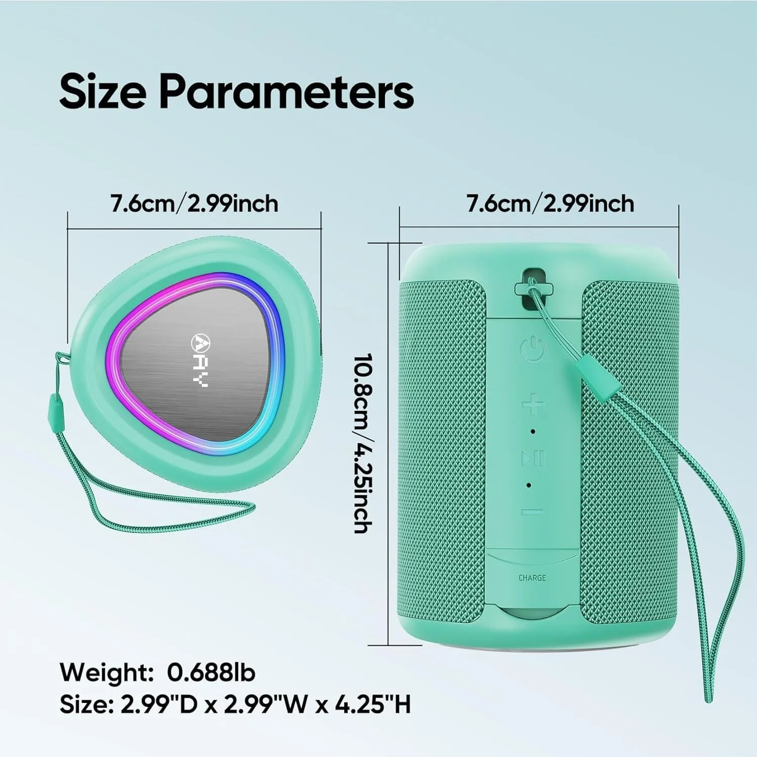 AY Altavoz Bluetooth portátil con luces, potente sonido cristalino, IPX5 impermeable, tiempo de reproducción durante todo el día, entrada de tarjeta AUX y TF, Bluetooth 5.3, emparejamiento TWS, pequeño altavoz inalámbrico para exteriores, ideas de regalo