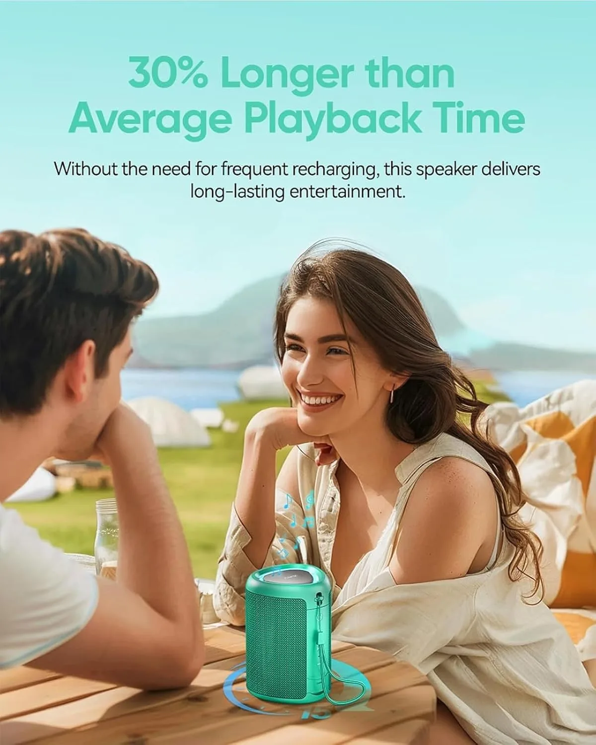【 Bluetooth 5.3 avanzado】: Equipado con el último chip Bluetooth 5.3, este altavoz garantiza un emparejamiento rápido y una conexión estable. También cuenta con un micrófono integrado para llamadas de alta calidad y reconexión automática al último dispositivo utilizado.