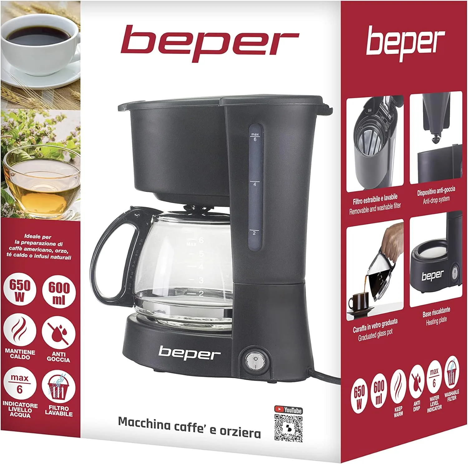 BEPER Cafetera Americana BEPER BC.060 Color Negro, 6 Tazas, de Goteo