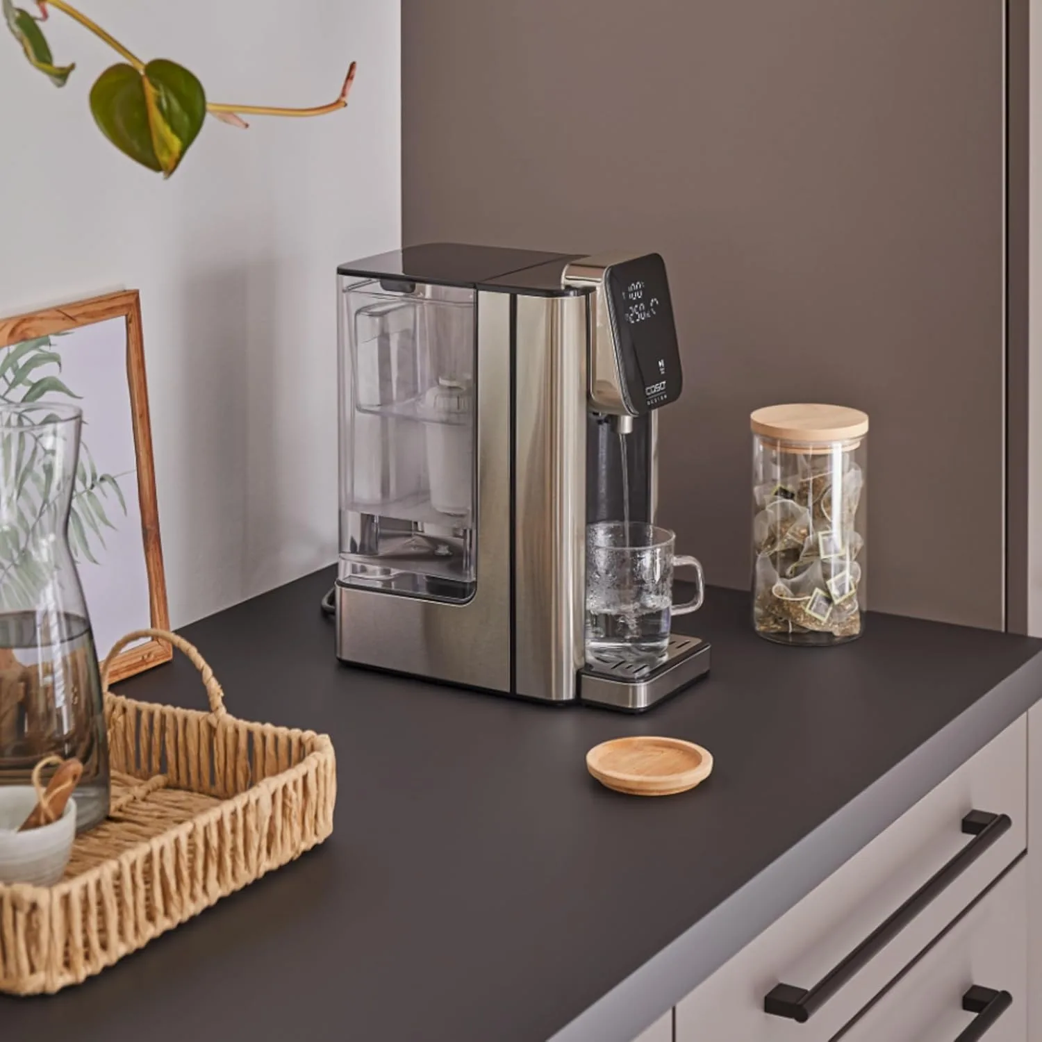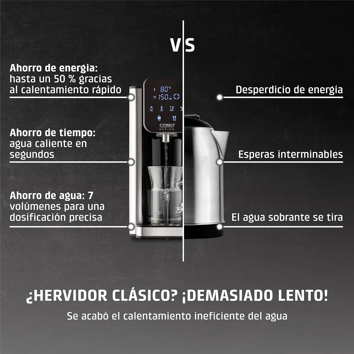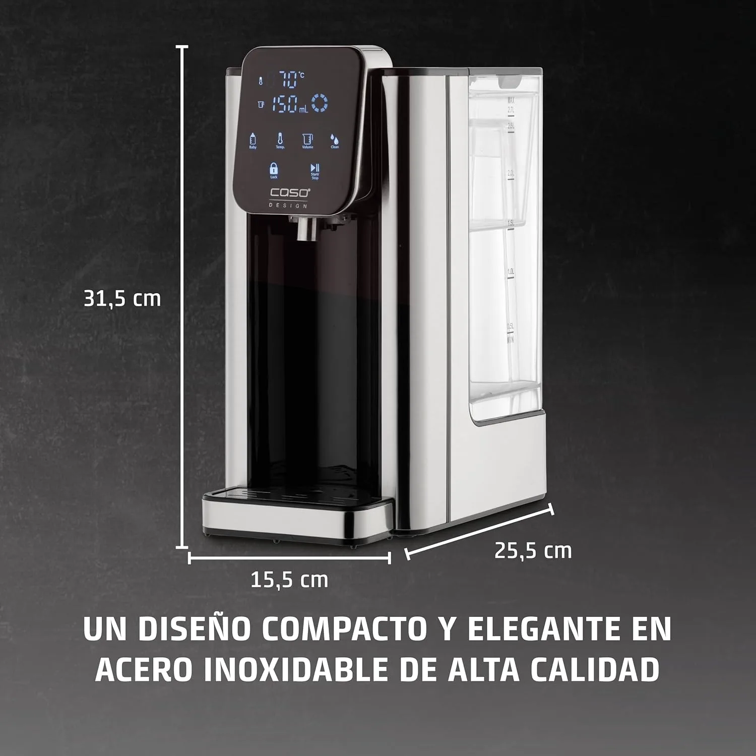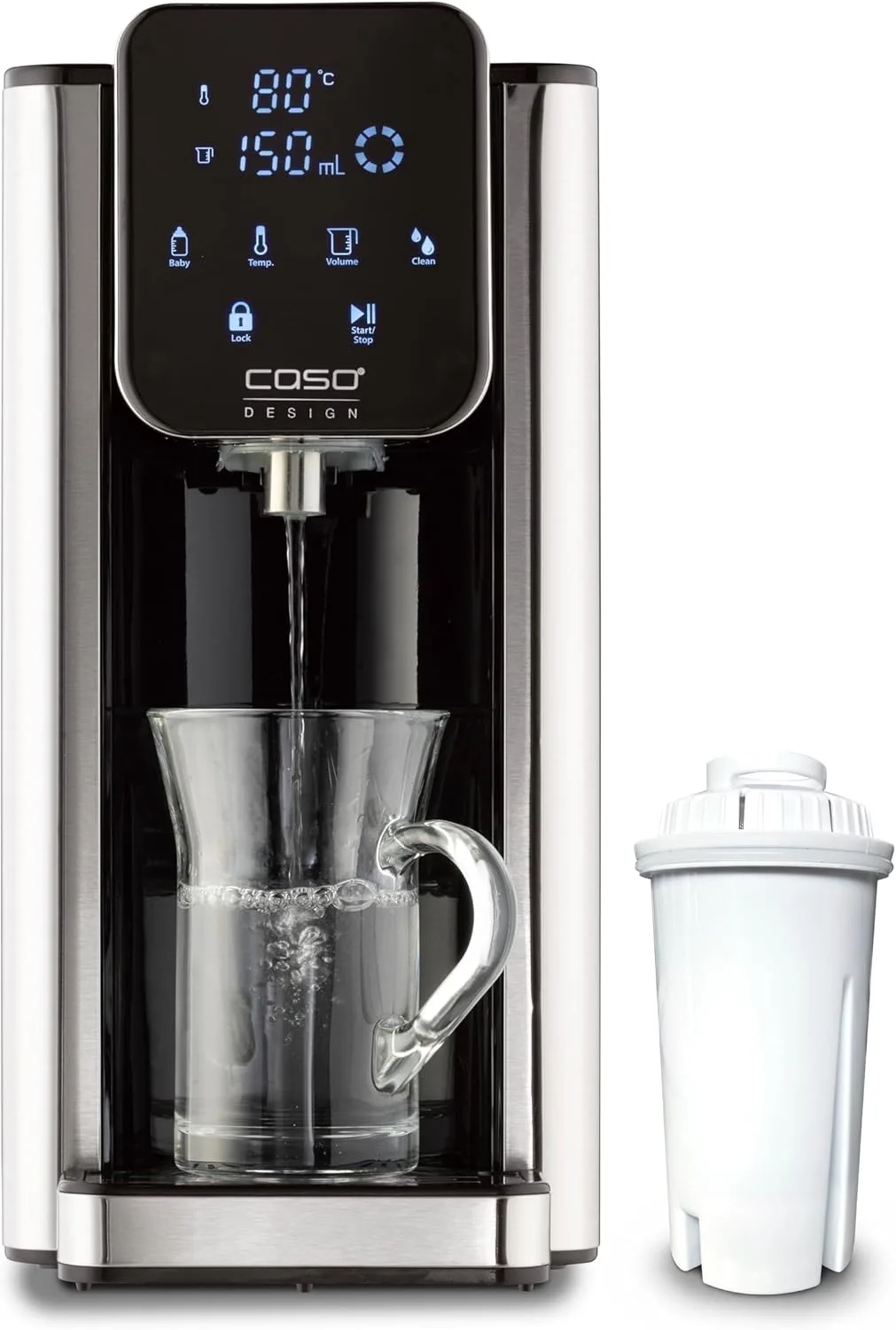 Love this hot water dispenser, I have arthritis in my hands and can not lift a kettle, it's sleek and stylish, followed the instructions which was easy to follow and set up, nice digital display you can choose your temperature depending on what your drinking your ml for cup sizes the display tells you when your water is low and when it needs descaling also great for baby formula it's so much more than just a hot water dispenser it looks good it feels strong I'm sure if you look after it as per instructions it will hopefully last a long time it's so much easier to fill one cup not only that you are only boiling what you need so should save on electricity too. I'm very happy with this slim machine it doesn't take up to much room it also has an auto lock so little fingers can't press or burn themselves it's quick and no limescale in your cup an enjoyable cuppa thank you Caso for this great hot water dispenser