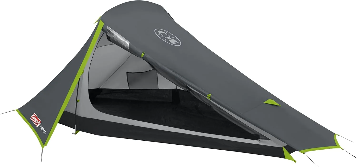 Coleman Bedrock 2 Tent The Bedrock 2 es una tienda compacta y fácil de montar para 2 personas, optima para senderismo, ciclismo y motocicleta. Al lado de la tienda de campaña, el equipaje y los zapatos se pueden guardar y mantener fuera de la lluvia. Superficie para dormir de 2.7 m². Construcción de 1.4 m². Tamaño del primer paquete: 55 x 15 x 15 cm. Peso: 2.8 kg. Columna de agua de 3000 mm, incluye bolsa de transporte con cremallera, cuerdas tensoras y suficientes estacas para tienda de campaña.