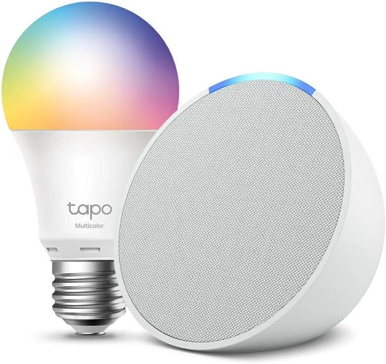 Este lote incluye 1 de Te presentamos el Echo Pop, y 1 de Tapo L530EA Bombilla LED Inteligente (E27): todo lo que necesitas para entrar en el mundo del Hogar digital.