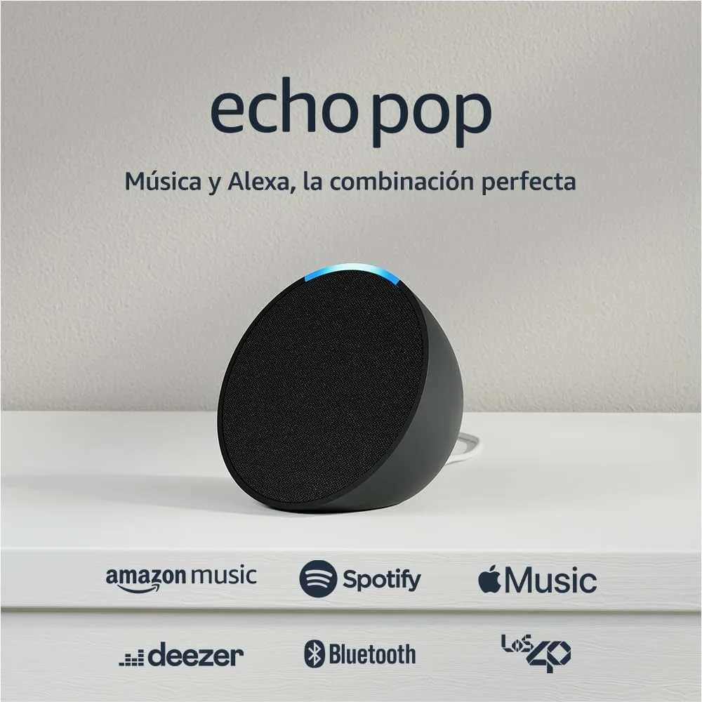 CONTROLA TU MÚSICA CON LA VOZ: Pídele a Alexa que reproduzca música, audiolibros y pódcast de tus servicios de streaming favoritos, como Amazon Music, Apple Music, Spotify, Deezer y más. También puedes conectar el Echo Pop a tu móvil por Bluetooth y llenar tu espacio del audio en streaming que reproduzcas desde tu móvil.