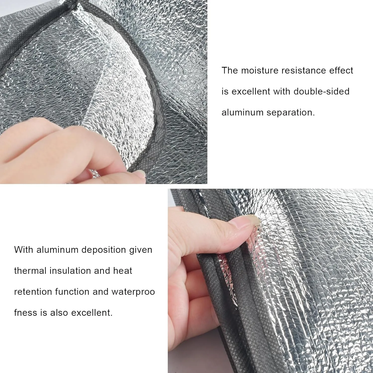 【Material de Alta Calidad】 Nuestros productos utilizan papel de aluminio de alta calidad de doble cara, aislado e impermeable, ligero, suave y resistente al desgaste. El borde está hecho de Oxford y es muy duradero.