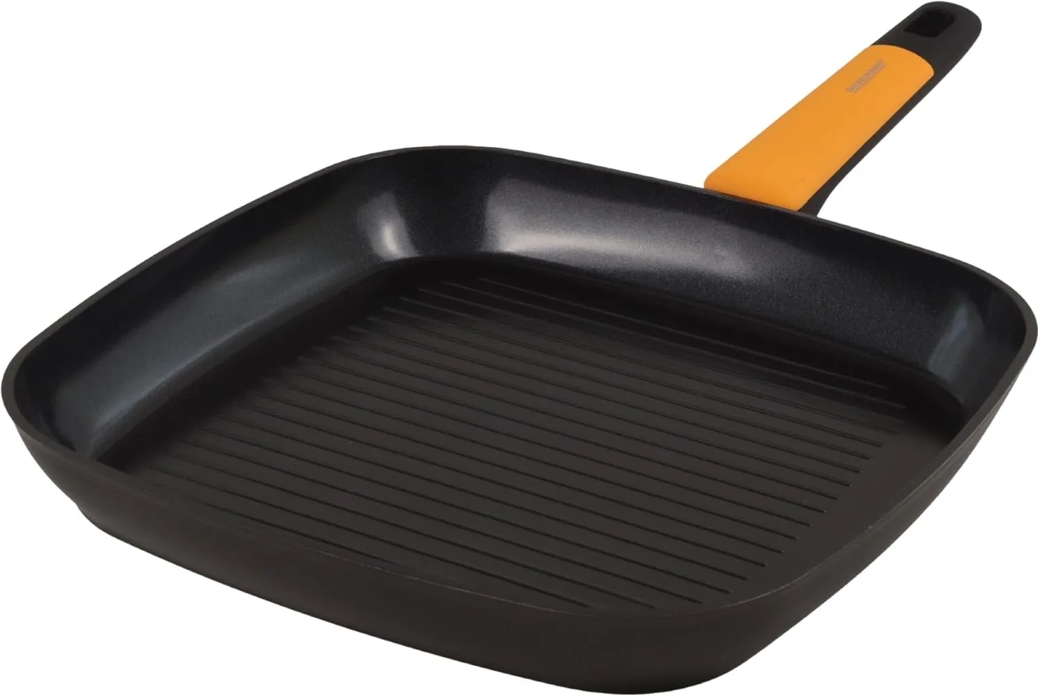 Fackelmann Soft Grill Antiadherente 28 cm, Aluminio Forjado, Revestimiento Cerámico Greblon Libre de PFA, Apta para Inducción, Vitro, Gas y Horno, Mango Soft Touch Resistente al Calor, 1 ud.