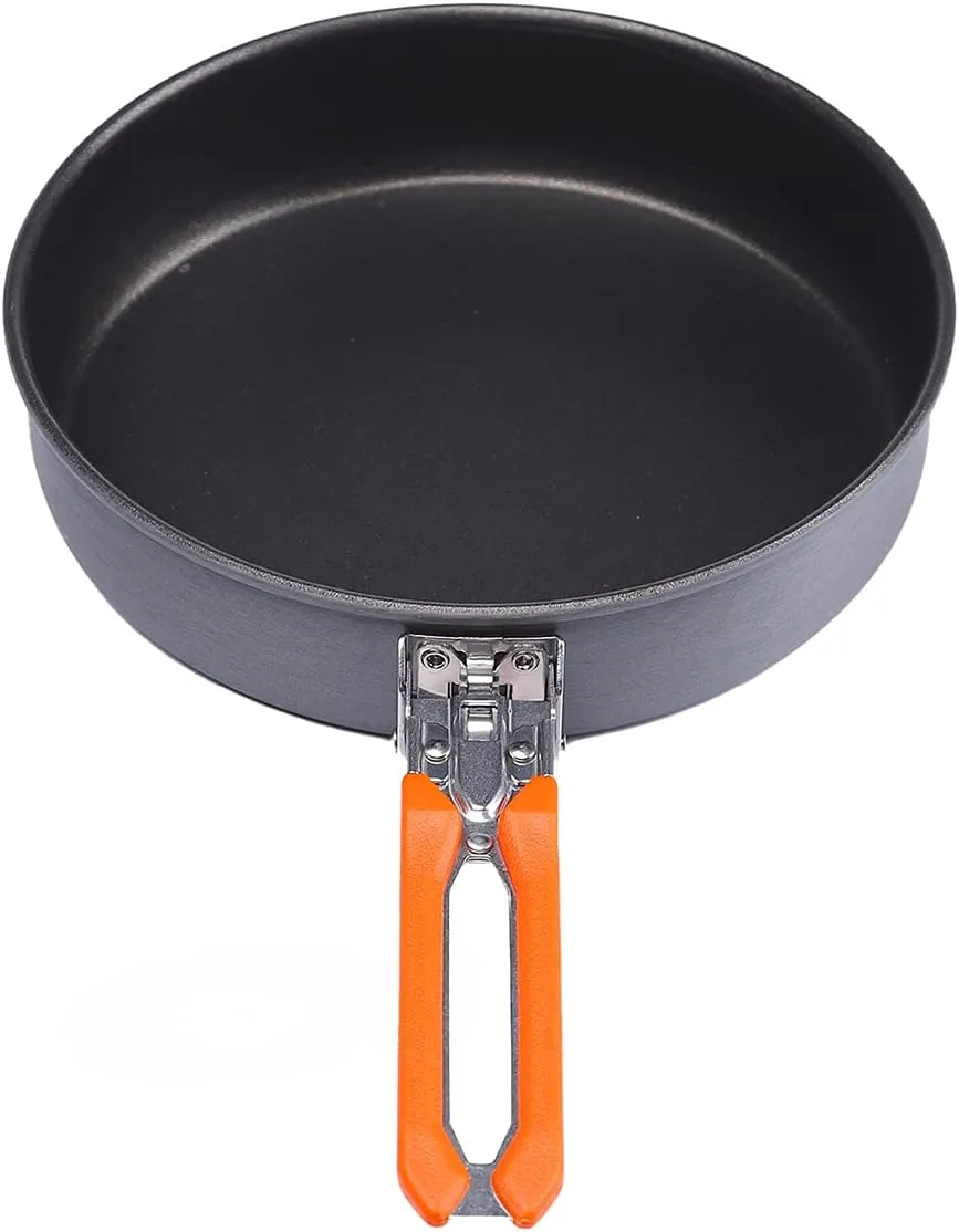 He estado usando este set de cocina Fire-Maple durante varias salidas de mochilero y acampadas cortas, y me ha resultado práctico, resistente y muy bien pensado. Tanto la olla como la sartén están hechas de aluminio anodizado, lo que las hace ligeras pero duraderas, perfectas para cargar en la mochila sin añadir peso innecesario.