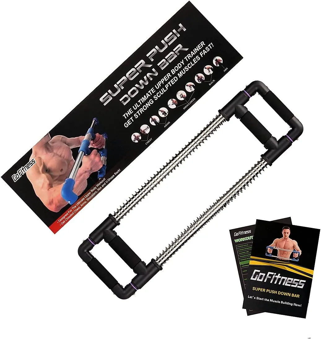 GoFitness Push Down Máquina – Aparato de Musculación para Pectorales en Casa, Ejercicio de Pecho y Brazos – Kit de Gimnasia Portátil con Resistencia de Muelle para el Hogar, Viajes o Exteriores