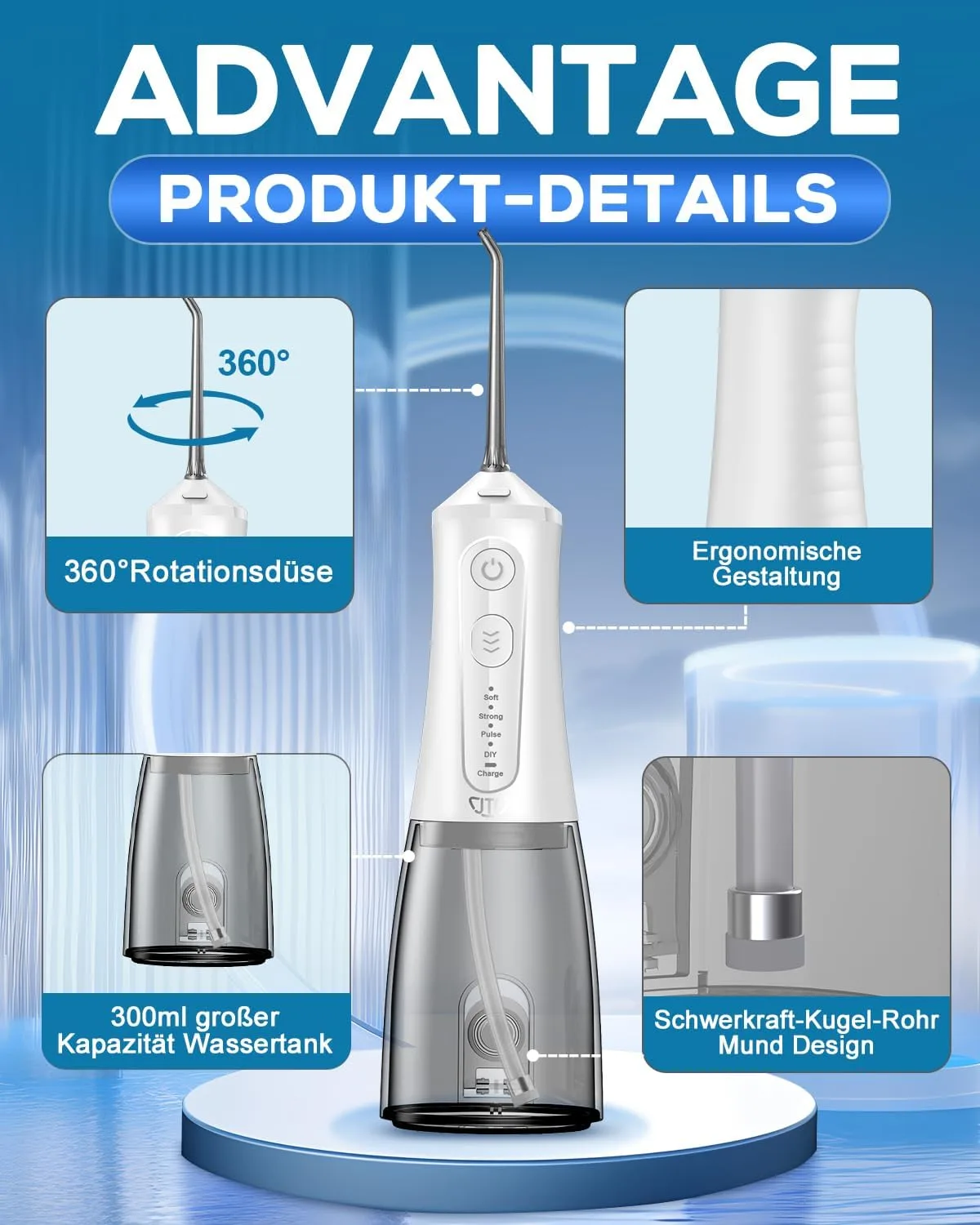 🗸 4 Modos + Personalizable (DIY): Elige el modo perfecto para tus necesidades: Suave (dientes/encías sensibles), Fuerte (limpieza intensa), Pulso (masaje gingival) o DIY (ajusta personalmente la presión del agua). Ideal para primeros usos y cuidado personalizado.