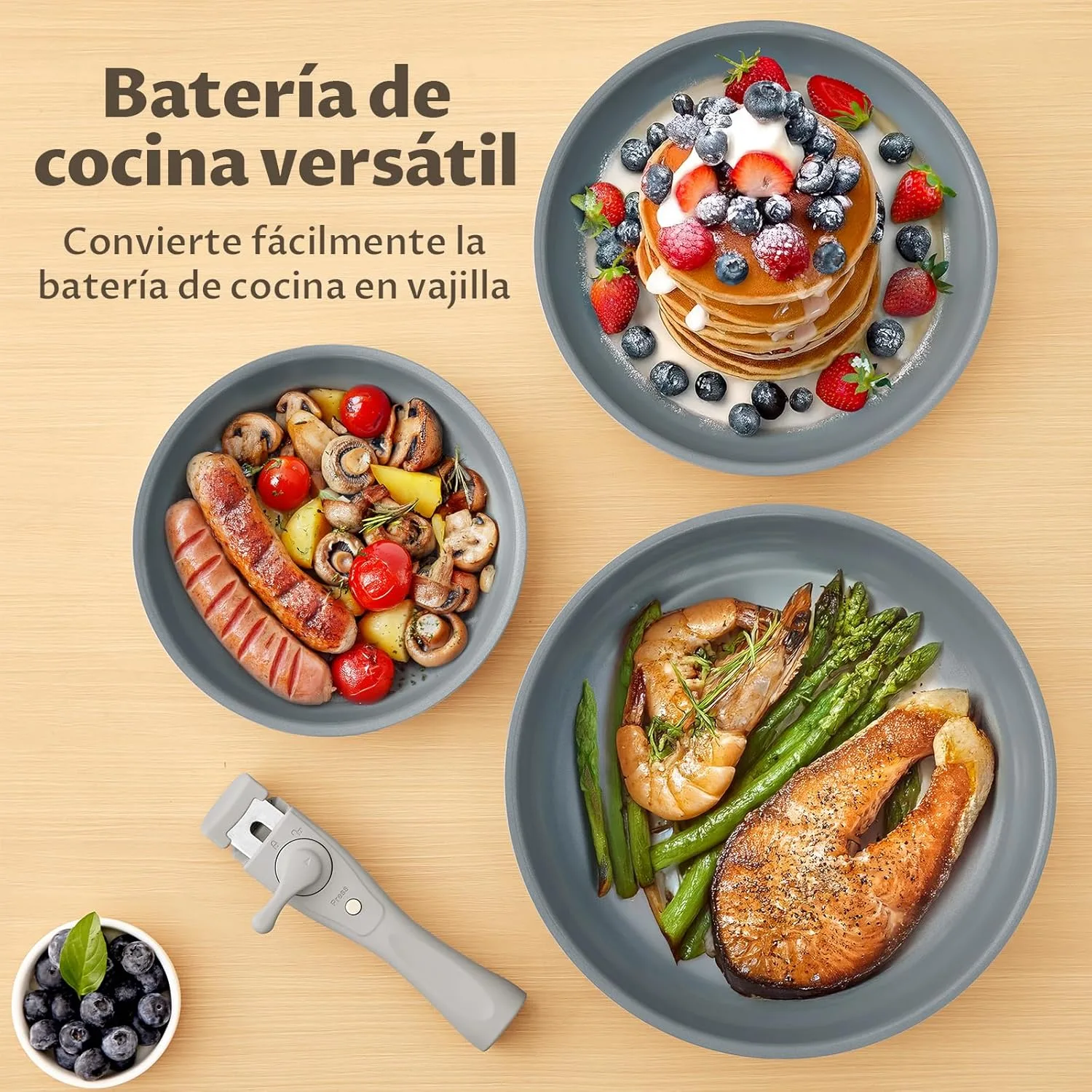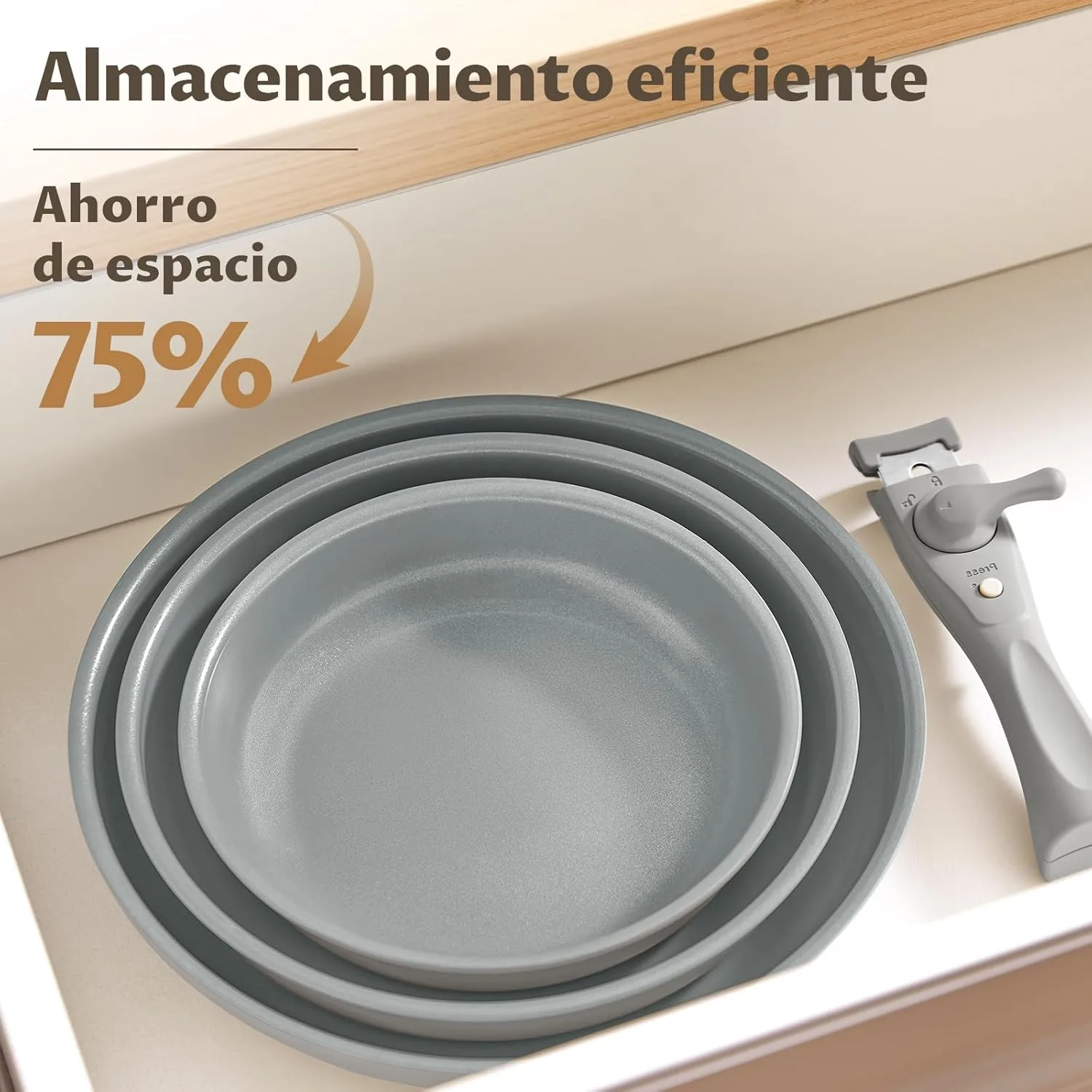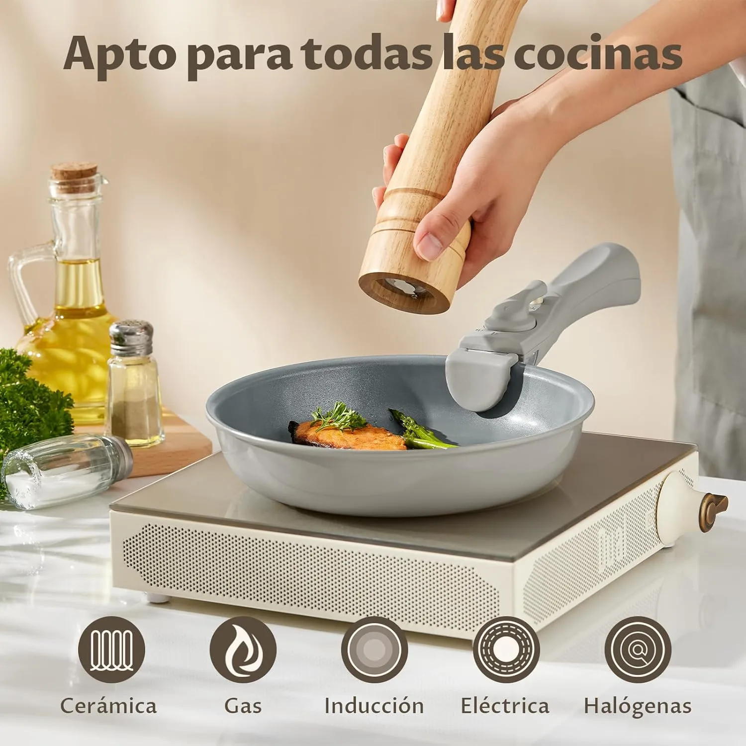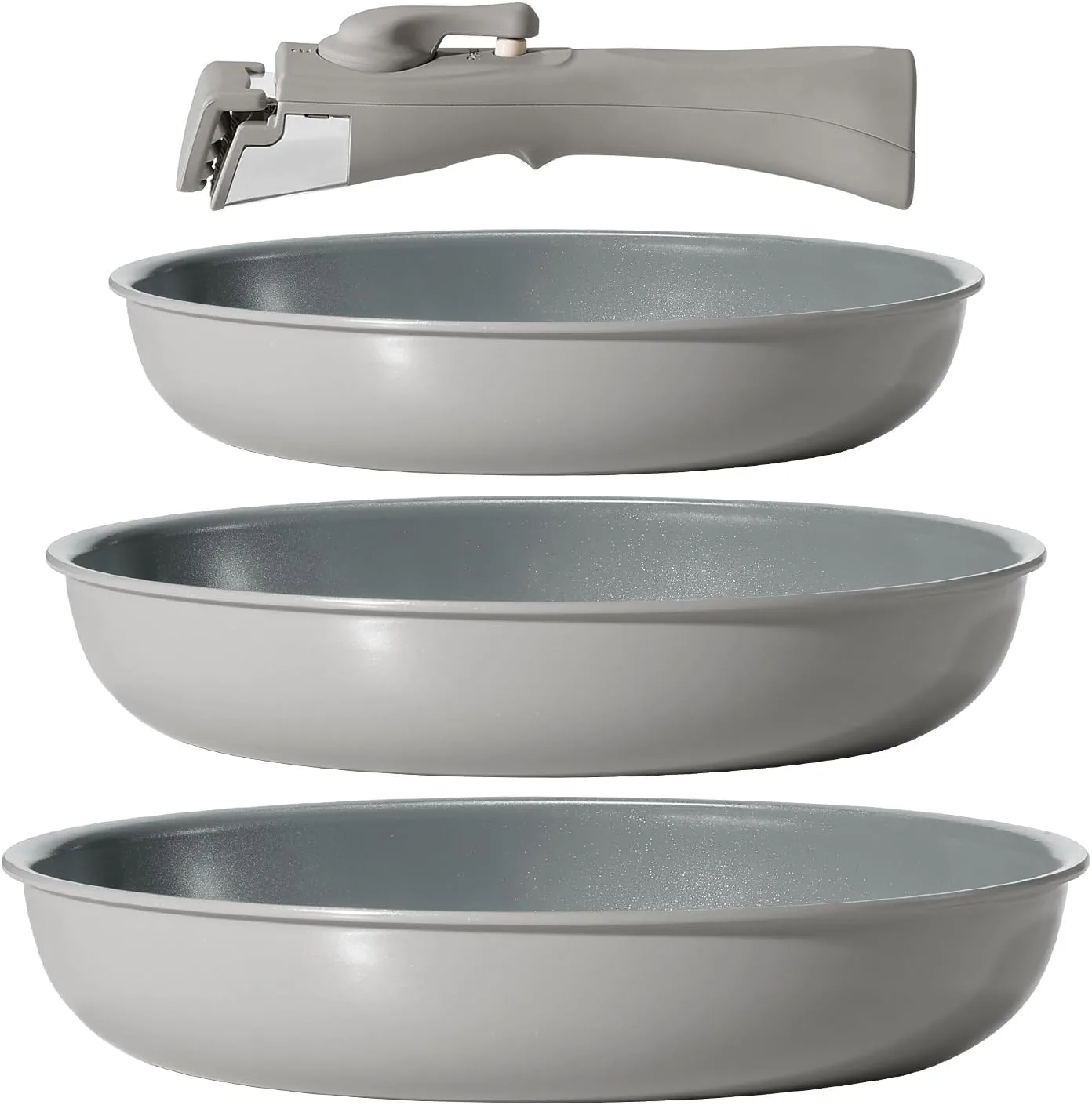 Ein weiteres Highlight ist der praktische Griff: Er lässt sich ganz einfach von einer Pfanne auf die andere befestigen, was viel Platz spart und die Handhabung erleichtert. Die Pfannen sind zudem spülmaschinenfest, was für mich einen weiteren Pluspunkt darstellt.