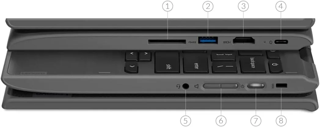 Diseño de superficie completo: el portátil táctil 2 en 1 Lenovo Chromebook 300e reacondicionado cuenta con una gran cantidad de puertos y una amplia gama de funciones de expansión que pueden satisfacer las necesidades de cualquier escenario de trabajo. Entre ellas se incluyen 2 puertos USB-C, 2 puertos USB-A 3.2, un puerto dos en uno para auriculares/micrófono, etc.