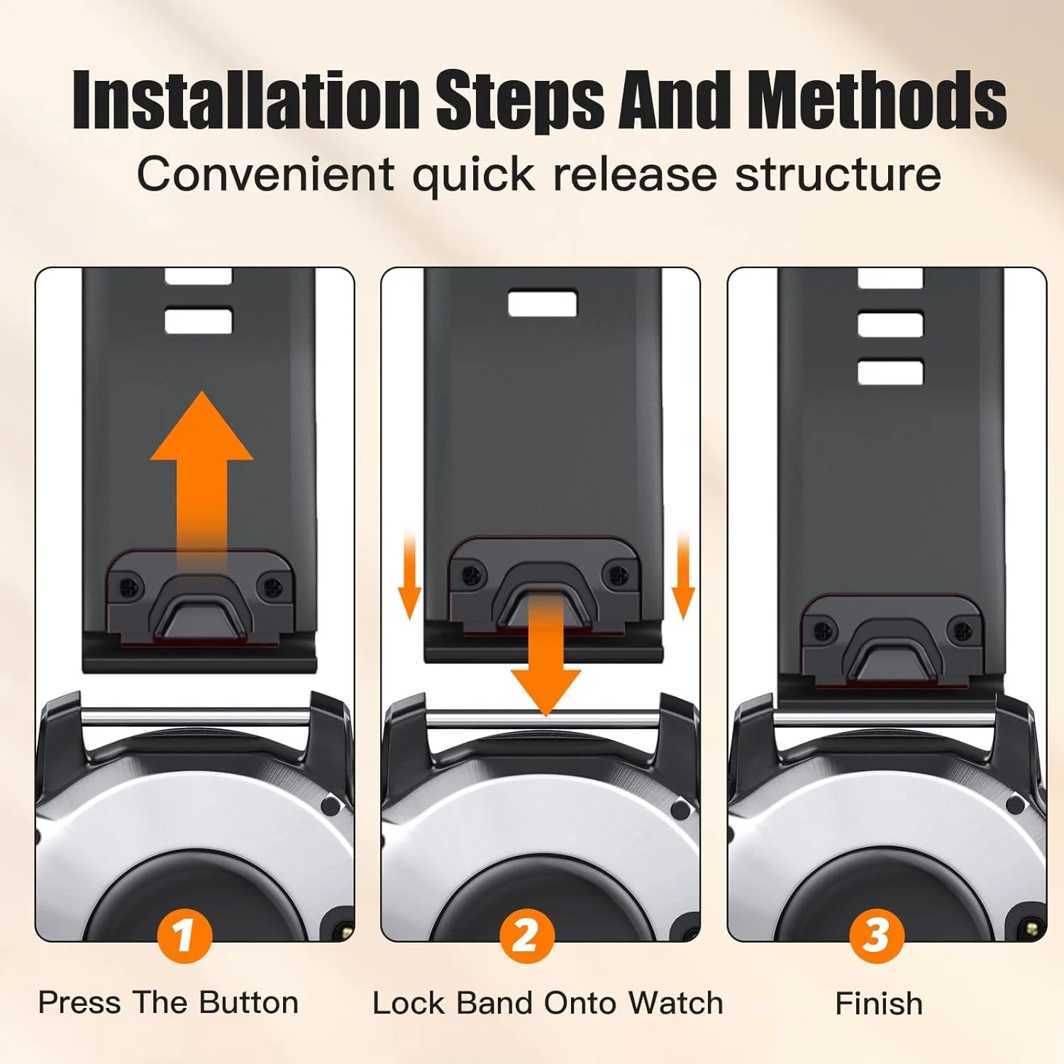 FÁCIL DE INSTALAR: Es fácil tomar o quitar la correa con un mecanismo de conexión fácil. La parte que se conecta a su reloj se ajusta bien y es suficiente para mantener su reloj seguro. Bueno para actividades deportivas o movimientos cotidianos.