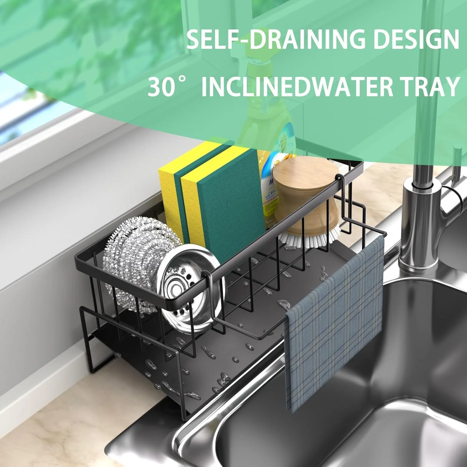 Diseño autodrenante: el organizador de fregadero Wenrescry tiene una práctica bandeja de drenaje autodrenante. Gracias al diseño inclinado, el exceso de agua se drena automáticamente hacia el fregadero, manteniendo la superficie de trabajo seca y ordenada.