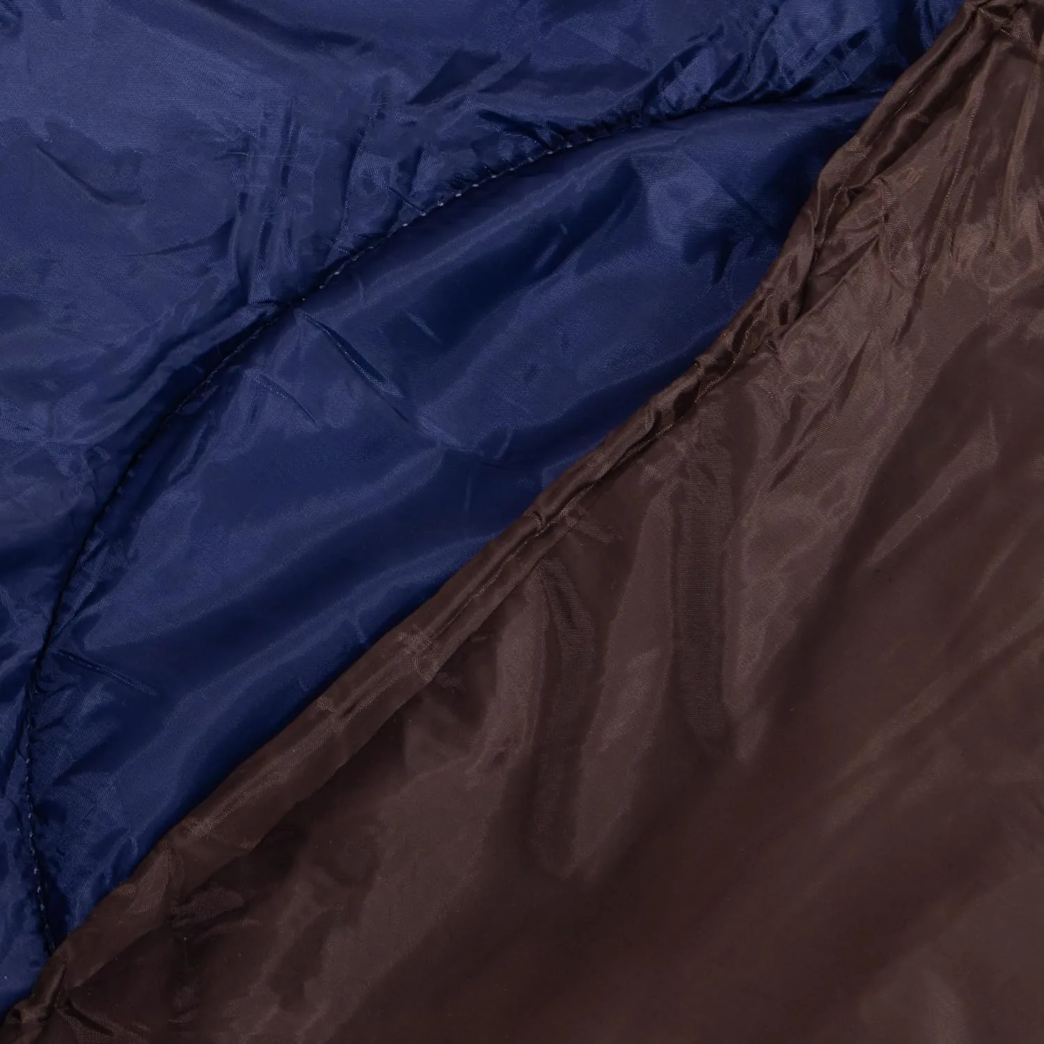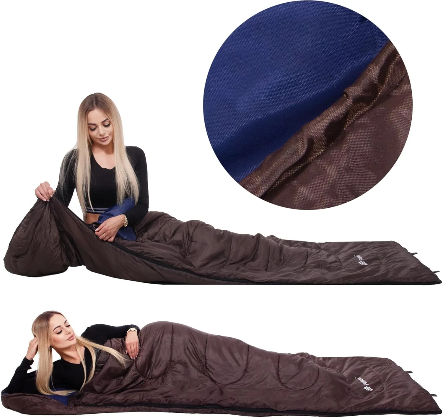 El saco de dormir es la opción ideal para aventuras al aire libre y excursiones de camping donde la comodidad y la calidez son prioritarias. La capucha con cordón garantiza que la cabeza permanezca caliente incluso en las noches más frías. La hermosa combinación de colores marrón oscuro-azul oscuro le da al saco de dormir una apariencia atractiva que se combina bien con el entorno natural.