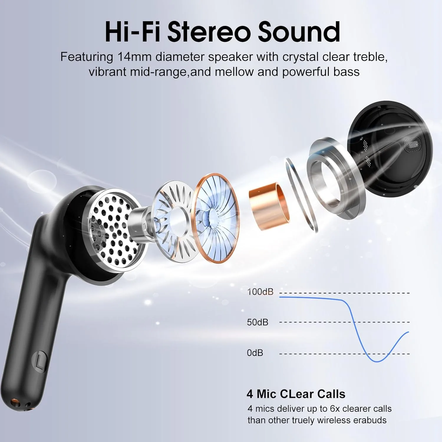 HiFi Sonido Estéreo y Llamadas Claras: Cascos inalambricos Bluetooth utilizan una unidad de altavoz profesional de 13 mm que ofrece una experiencia de audio inmersiva y de alta fidelidad. Los graves son más potentes, los medios son completos y con textura, y el sonido estéreo es nítido. Además, H97 auriculares están equipados con 4 micrófonos ENC de reducción de ruido que cancelan pasivamente el 90% del ruido de fondo para llamadas más nítidas, y ofrecen un estéreo de alta fidelidad superior.