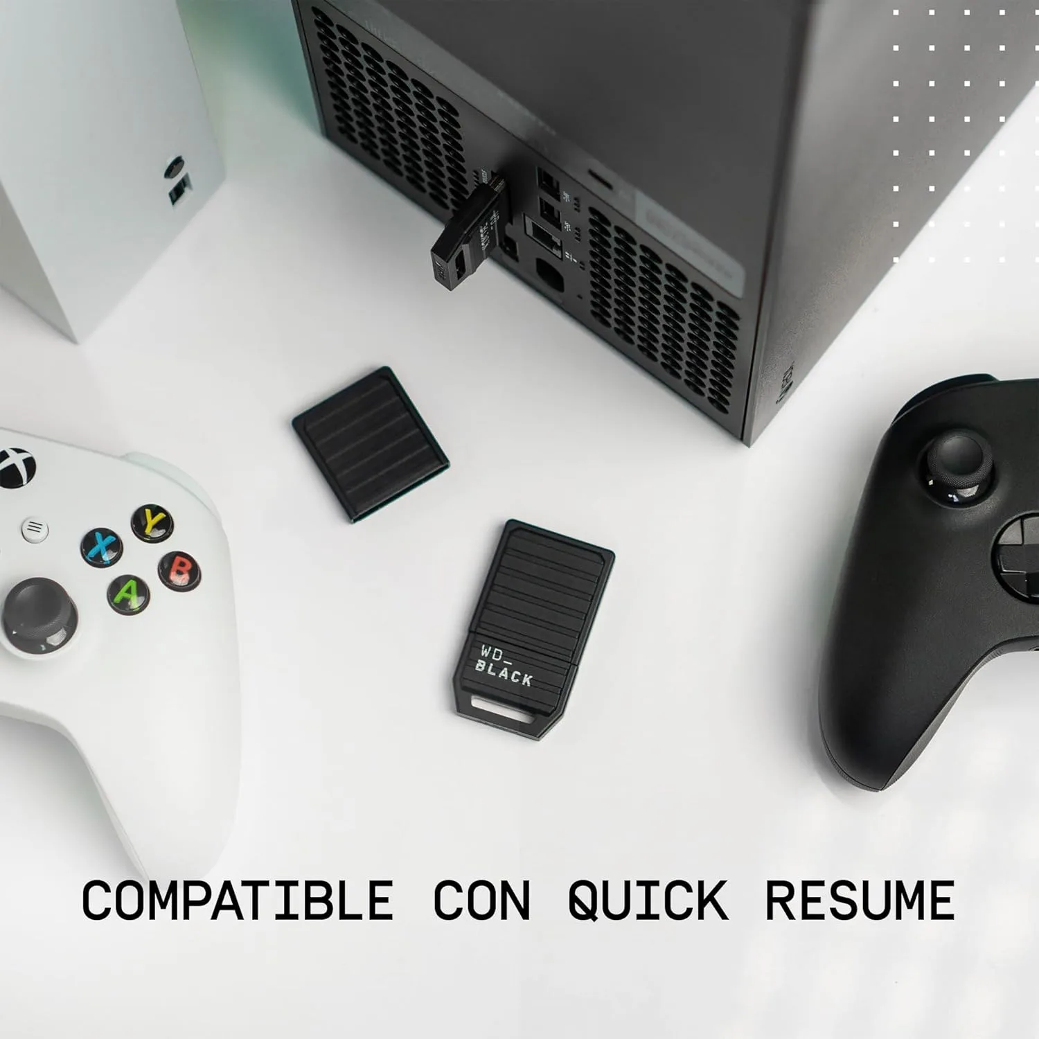 Almacena y juega más en Xbox: Las soluciones que no incluyen tarjetas de expansión requieren transferencias continuas de juegos en la consola. La tarjeta de expansión WD_BLACK C50 para Xbox permite pasar a la acción más rápido.