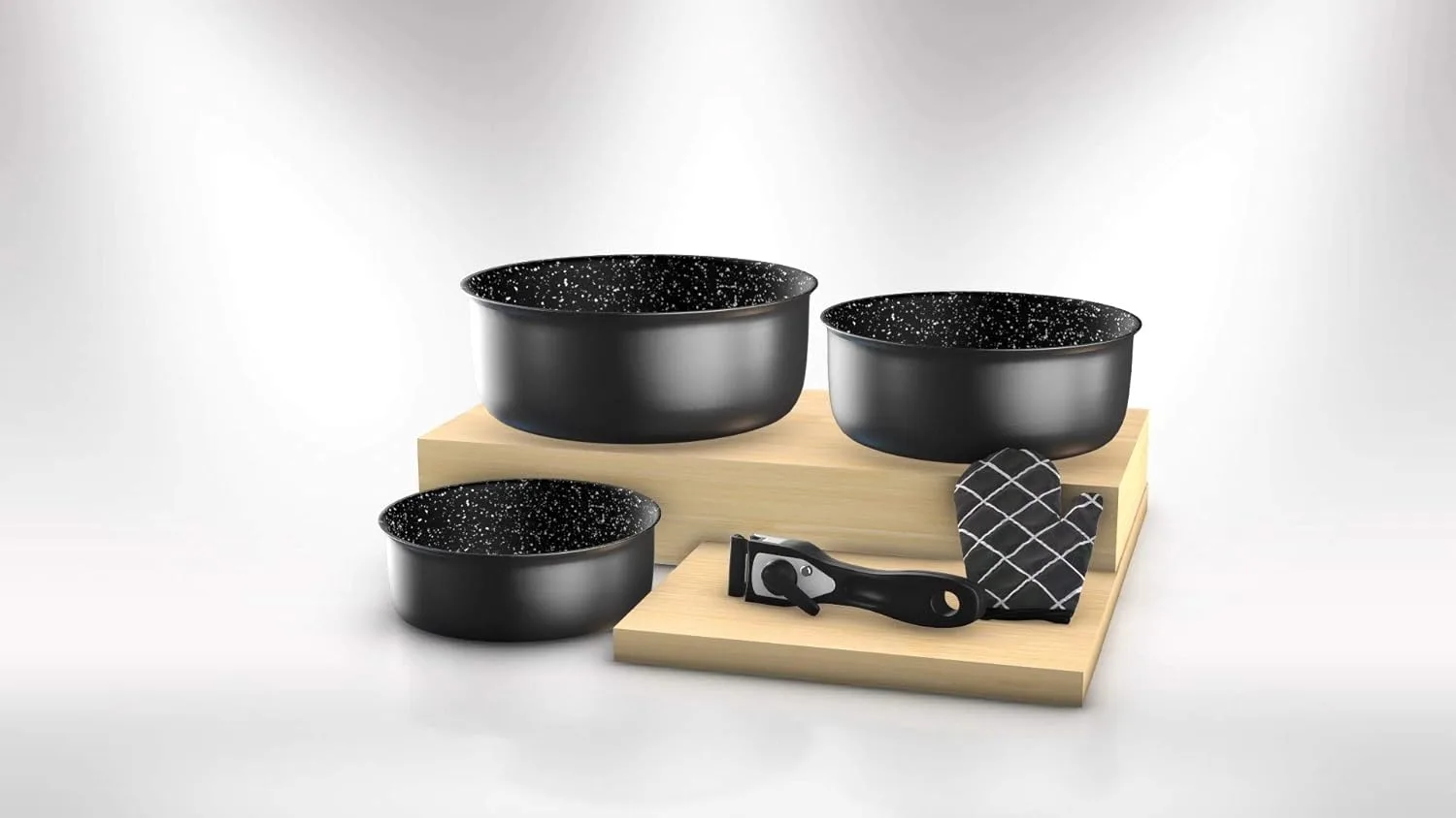Mangos Desmontables: Mangos ergonómicos y extraíbles para facilitar el uso y almacenamiento, con sistema de bloqueo rápido para cambiar de olla sin esfuerzo y ahorrar espacio