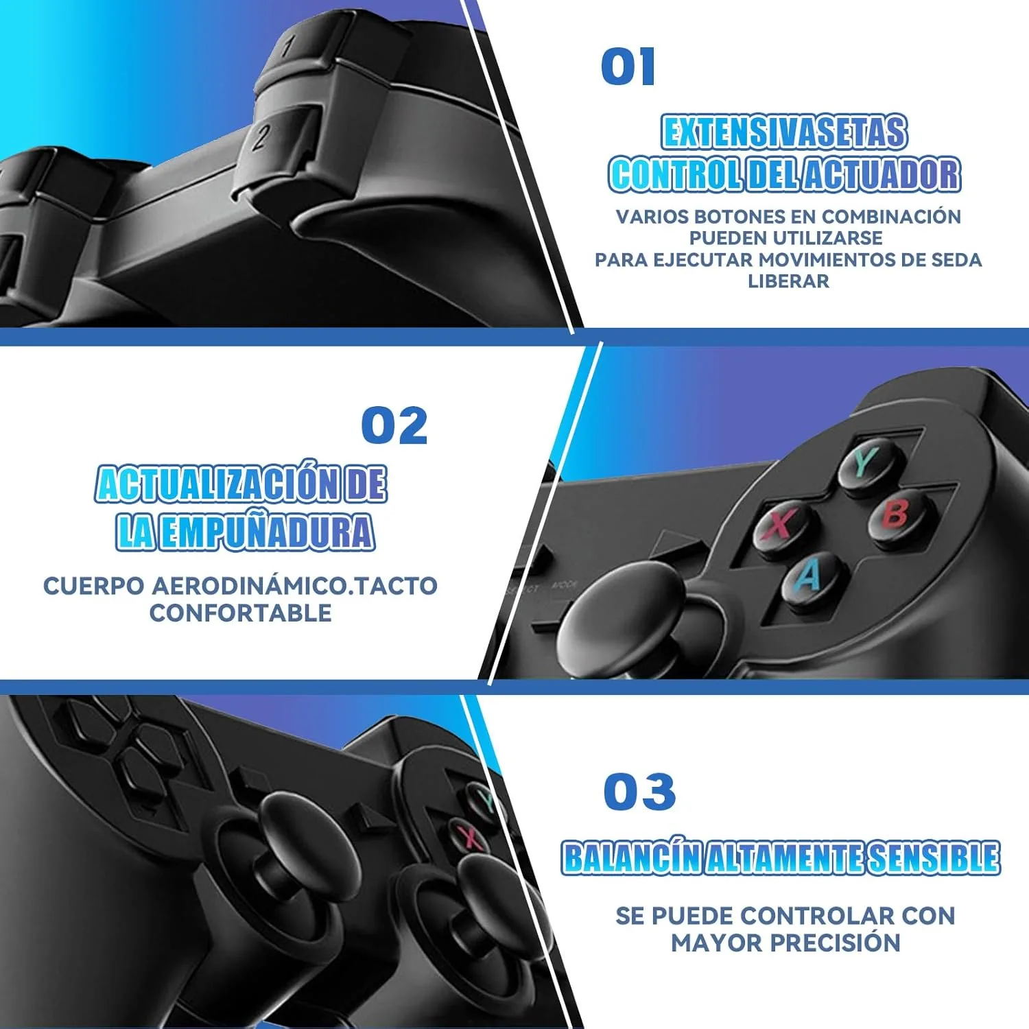 【Con 2 controladores inalámbricos estables】La consola emuladora está equipada con 2 controladores inalámbricos, que tienen una excelente conectividad, señal estable dentro de 8 metros y casi ninguna latencia. Ya sea una reunión familiar o un juego multijugador con un grupo de amigos, la consola portátil es precisa para operar y responde de manera oportuna, para que pueda disfrutar de un control suave en el juego sin preocuparse por problemas de señal que afecten la experiencia de juego