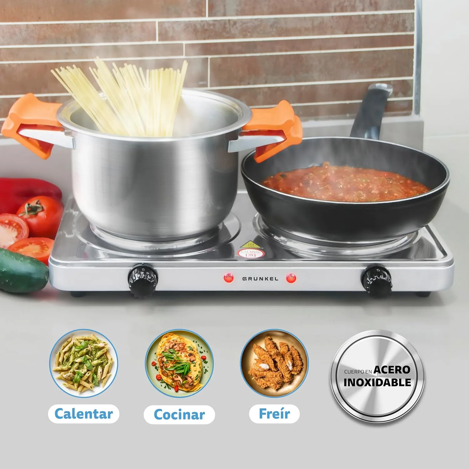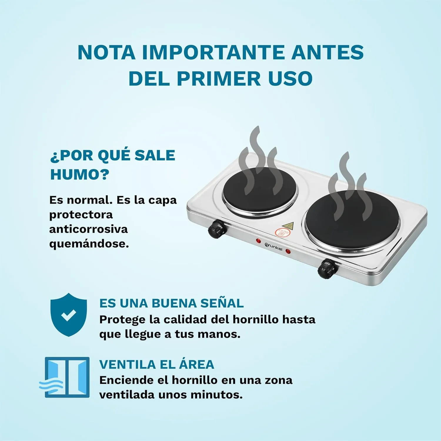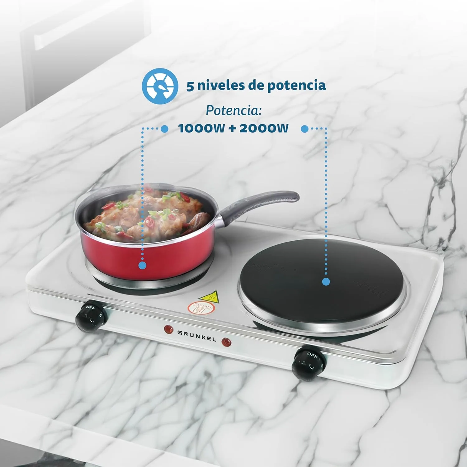 Resumen del producto: Grunkel – EHP-118 – Hornillo Eléctrico de 18,5cm de Placa. Cocina Eléctrica portátil ideal para Caravanas, Camping o Cocinas Pequeñas – 1500W – Metal forjado – Blanco (2 Inox 2500W)