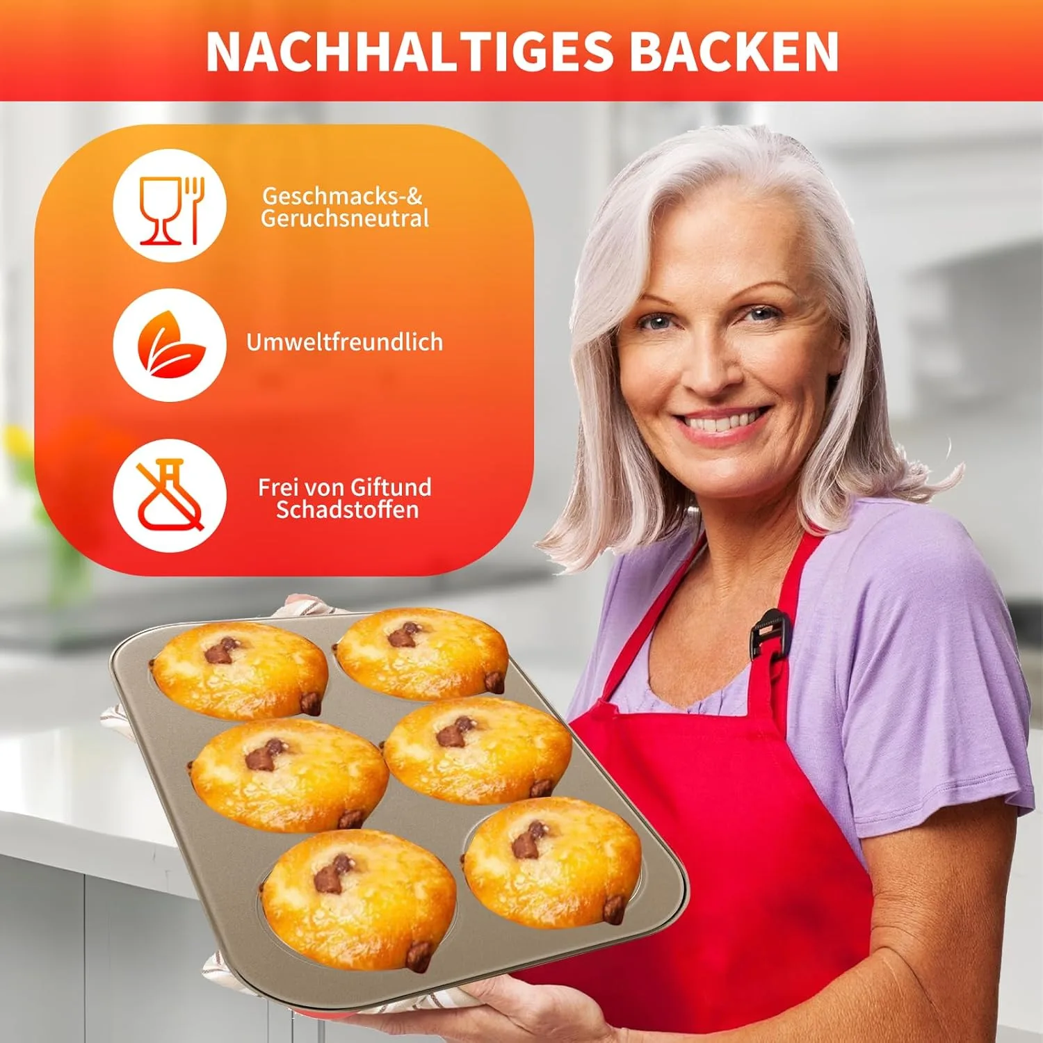 Ich hab mir das 2er-Set Muffinformen aus Karbonstahl bestellt, weil ich oft Muffins backe und genug Formen haben wollte, um mehrere gleichzeitig machen zu können. Die Bleche sind robust und die Antihaftbeschichtung funktioniert überraschend gut und das Reinigen geht einfacher als erwartet.