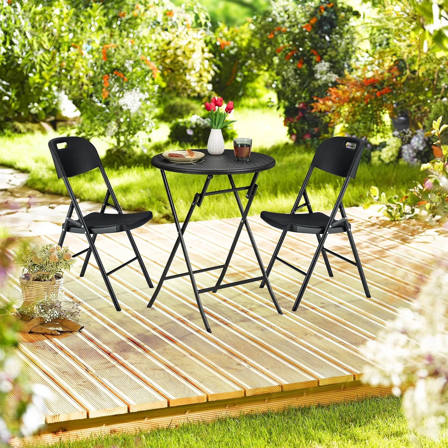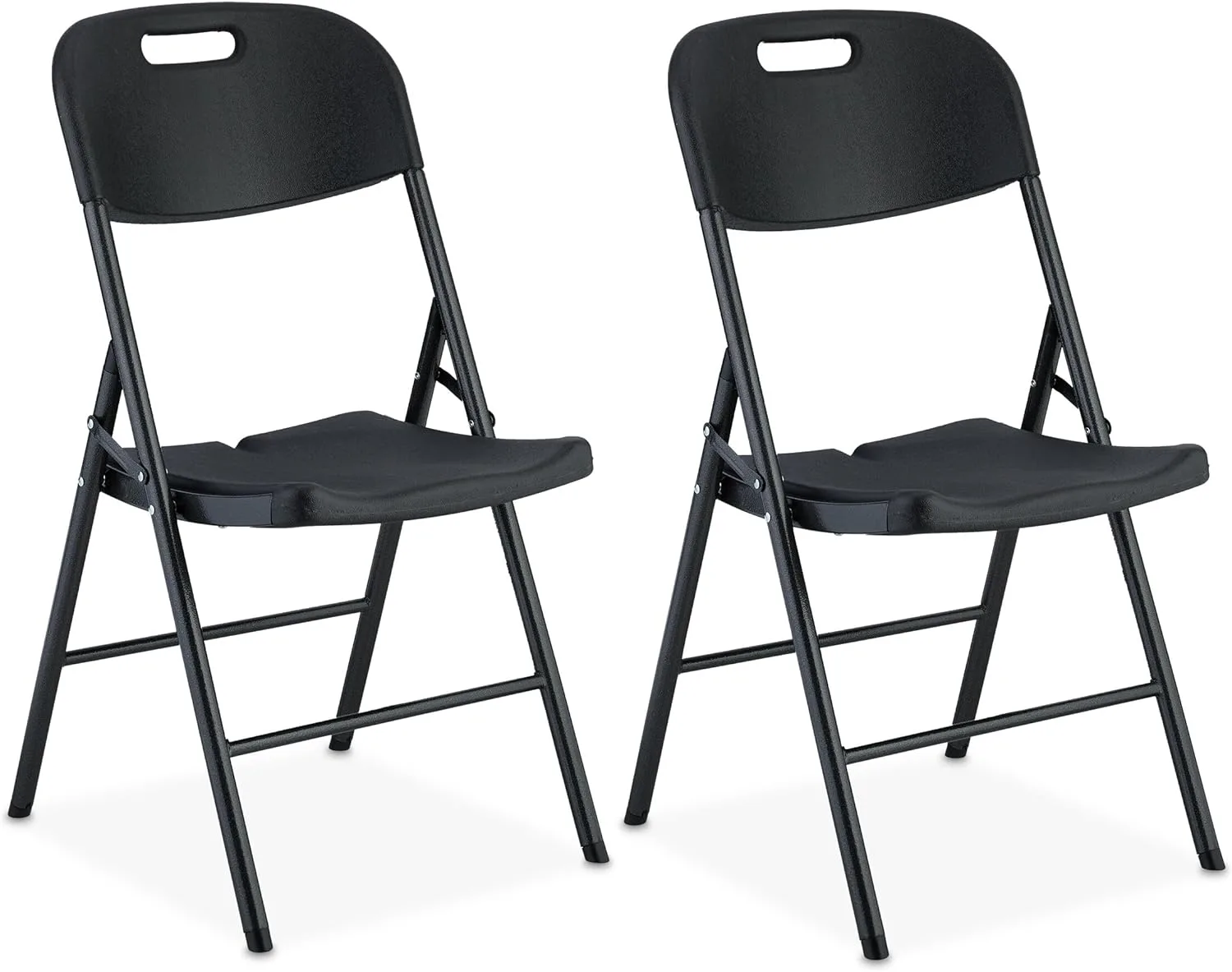 En un set: práctico juego de 2 asientos plegables para balcón, patio y jardín. En color negro