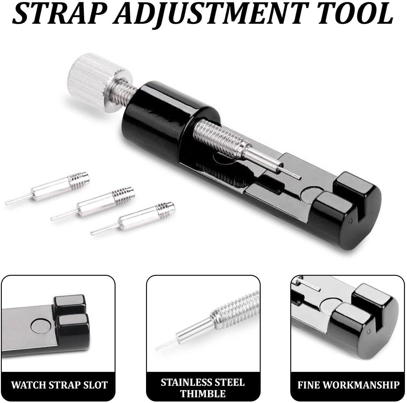 【Practical Design】This product features a simple and practical design. It is equipped with 3 pins of different sizes to facilitate the disassembly and adjustment of the watch strap as needed.