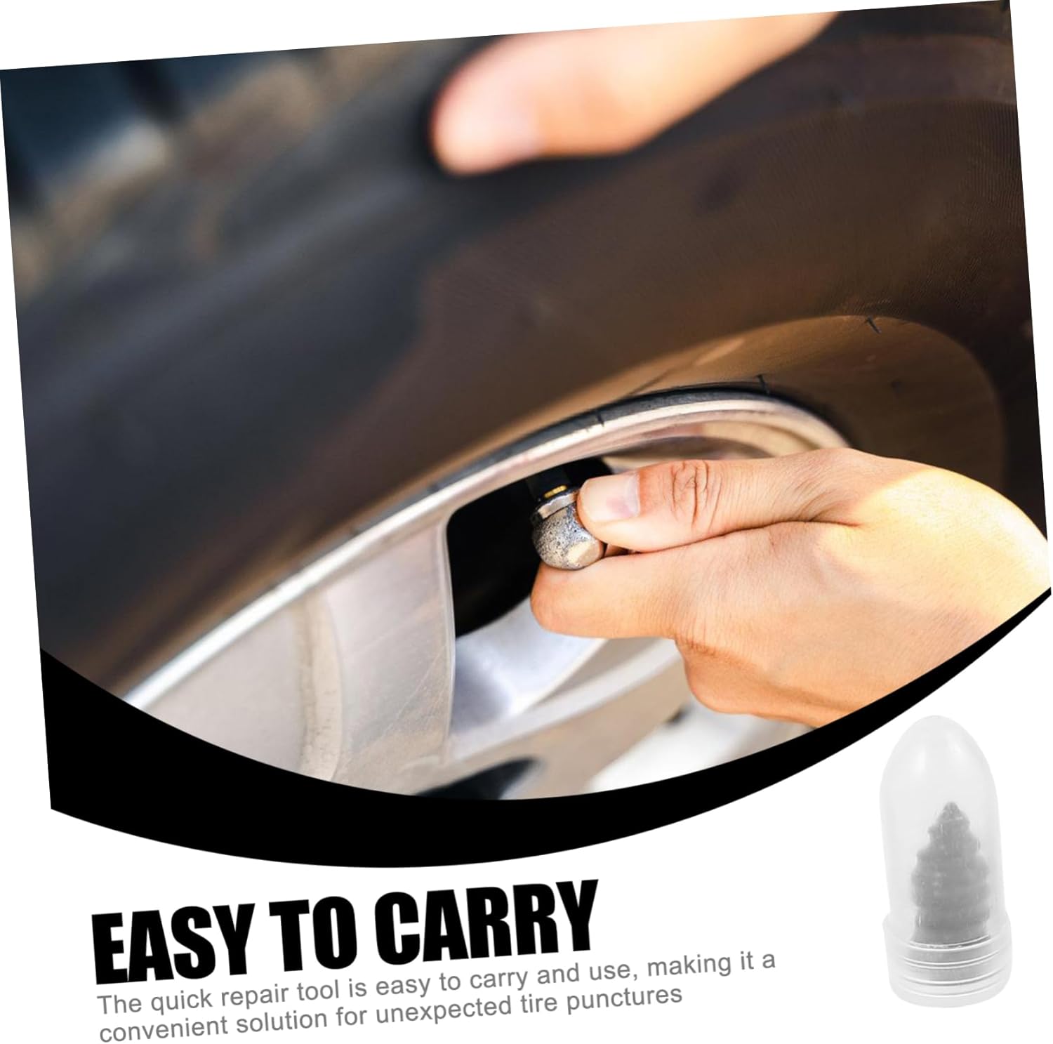 – The quick repair tool is easy to carry and use, making it a convenient solution for unexpected tire punctures.