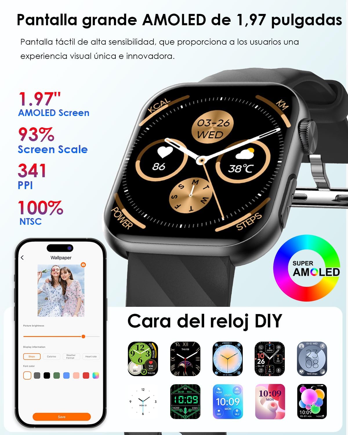 2026 New ECG Smart Watch with Artery HRV/BMI/Uric Acid, 1.97″ AMOLED Smartwatch SOS Function, 24/7 Heart Rate Monitor, SpO2, Stress, Sleep Monitor, Activity Bracelet for Android iOS