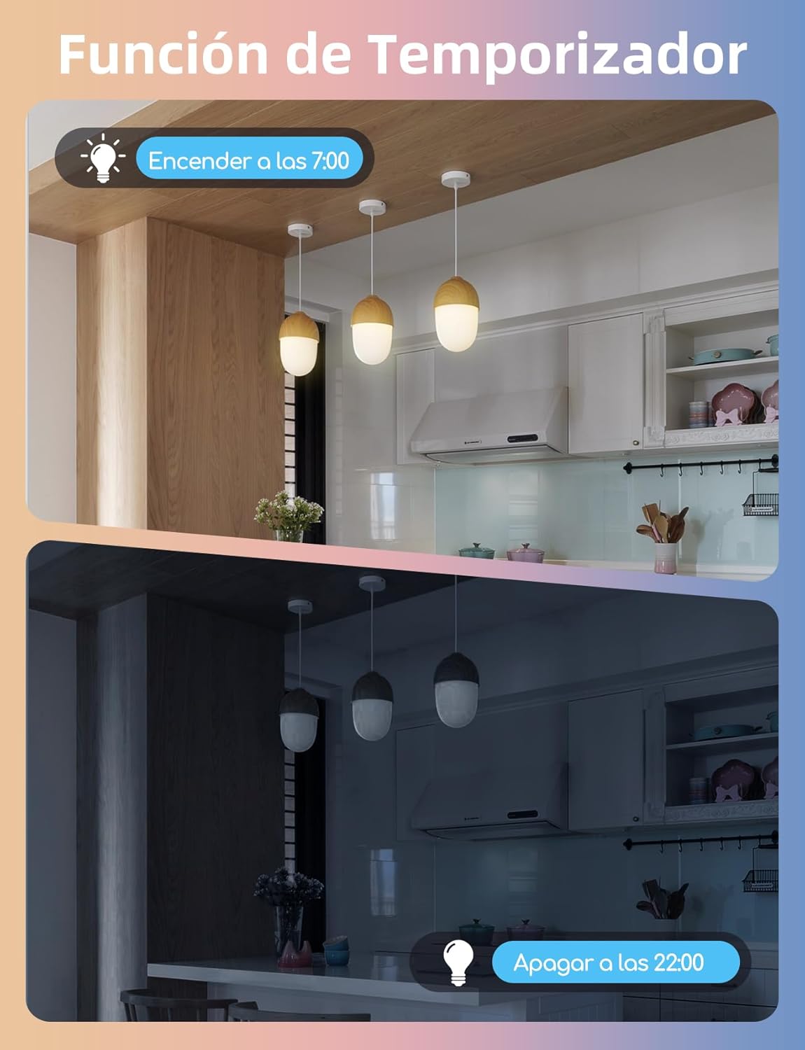 Compré 2 cajas de 4 bombillas en una oferta que hubo a 25€ cada caja, para sustituir las bombillas LED tradicionales, que hasta ahora controlaba mediante enchufes inteligentes conectados a Alexa. Con estas nuevas bombillas, ya no es necesario el enchufe inteligente, ya que puedes controlar el encendido y apagado directamente desde Alexa, conectándolas a la red de 220 VCA.