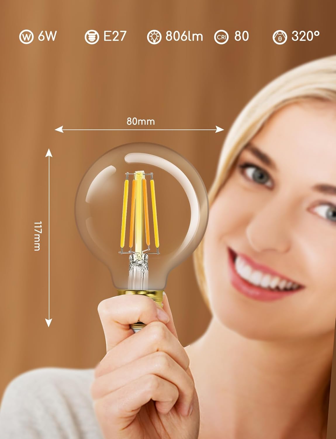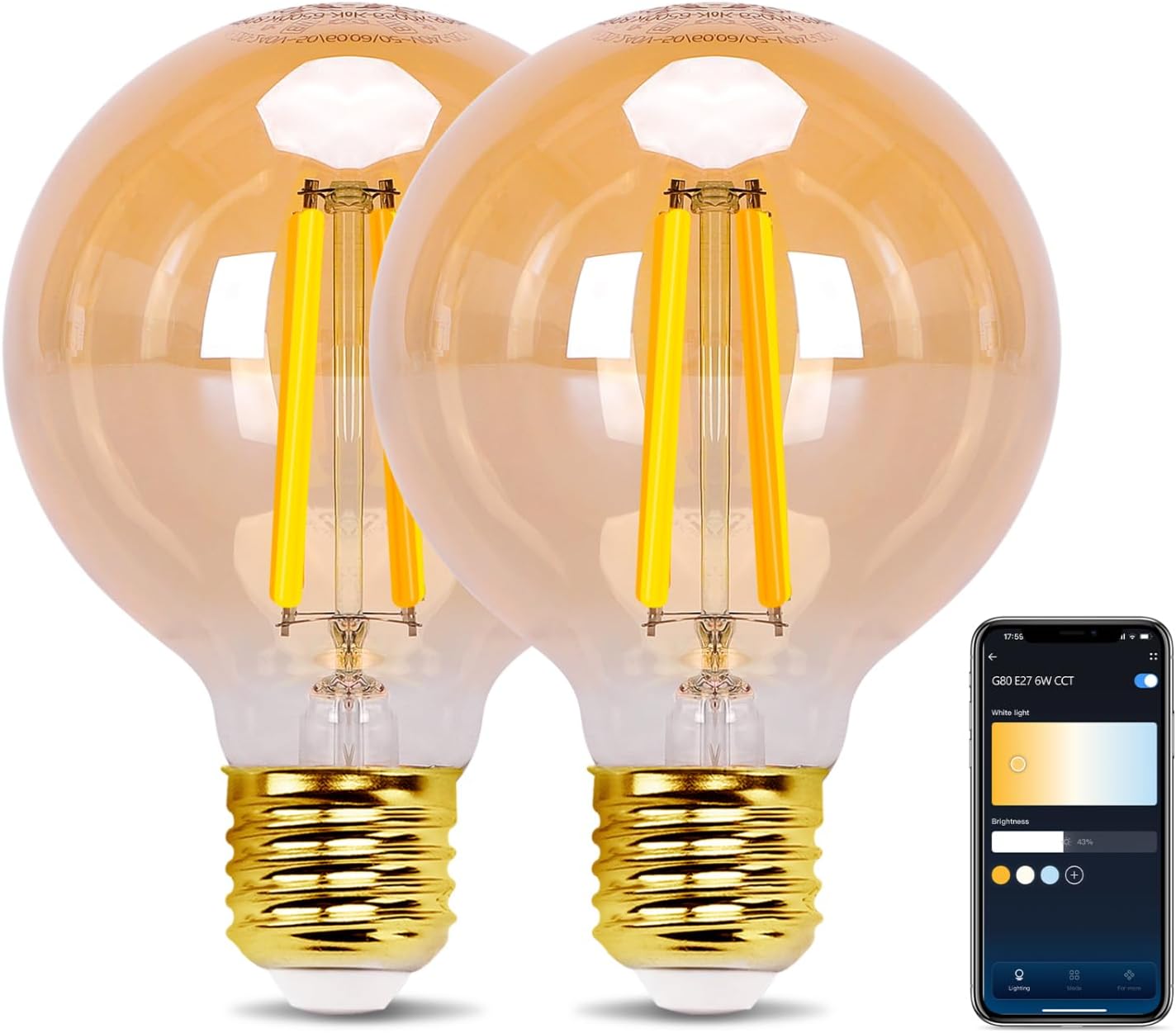 Product Summary: Aigostar Smart LED Bulb, Alexa LED Vintage Bulb, G80 Amber Globe Bulb, 6W 806LM, Dimmable Warm to Cool 2700K to 6500K, E27 Socket, Compatible with Alexa and Google Home, 2 Pack