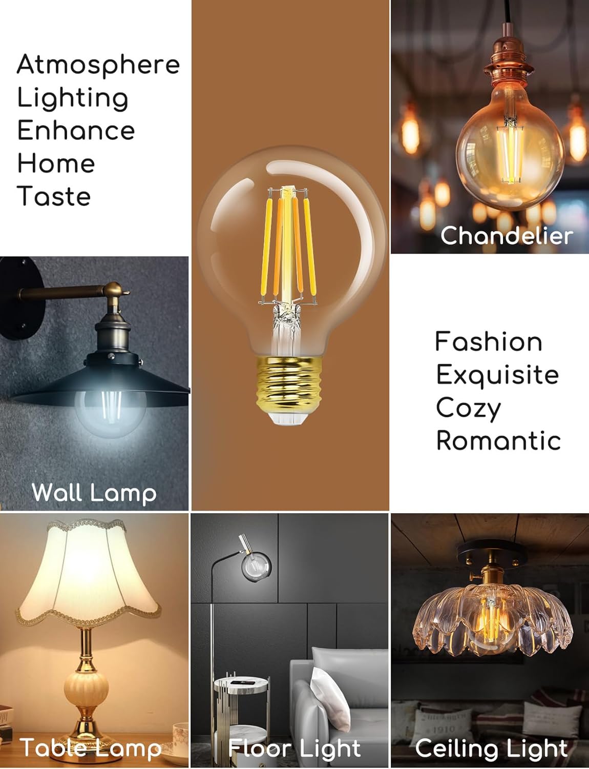 Wide range of applications: The smart retro LED bulb fits standard E27 base, with a 360° beam angle, ideal for bringing the perfect atmosphere to your home, restaurant, cafe, bar, shop window, etc. Perfect for use in chandeliers, ceiling lights, wall lights, table and floor lamps, etc. UV and IR free, flicker-free. Gentle and harmless to eyes and skin