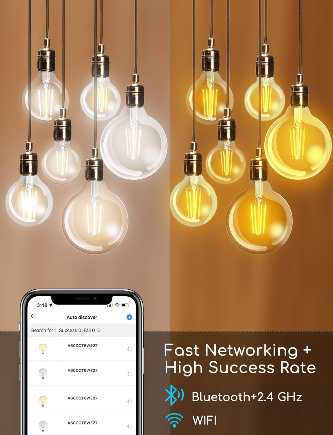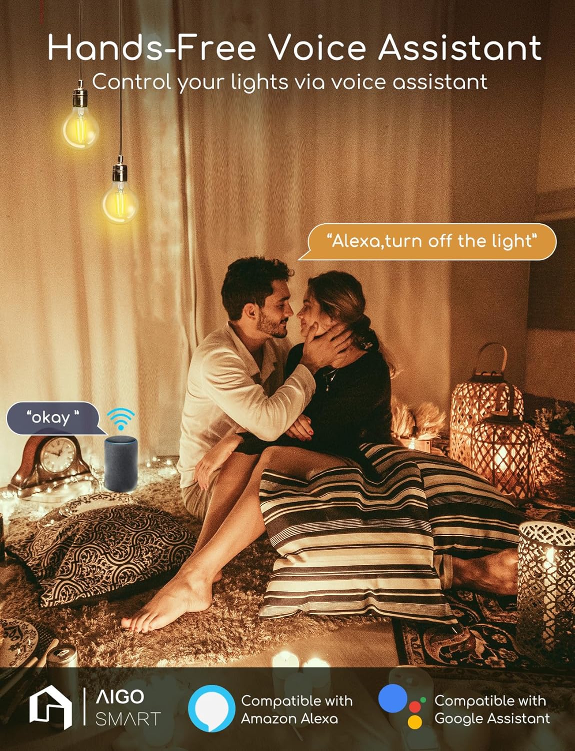 Apps and Voice Control: No hub or smart plug needed. Just download the free «Aigosmart» app, connect the Edison smart bulb to your 2.4GHz WiFi and you can control it from anywhere. Also, this smart bulb is compatible with Alexa and Google Assistant for voice control. (Note: does not support 5GHz Wi-Fi)